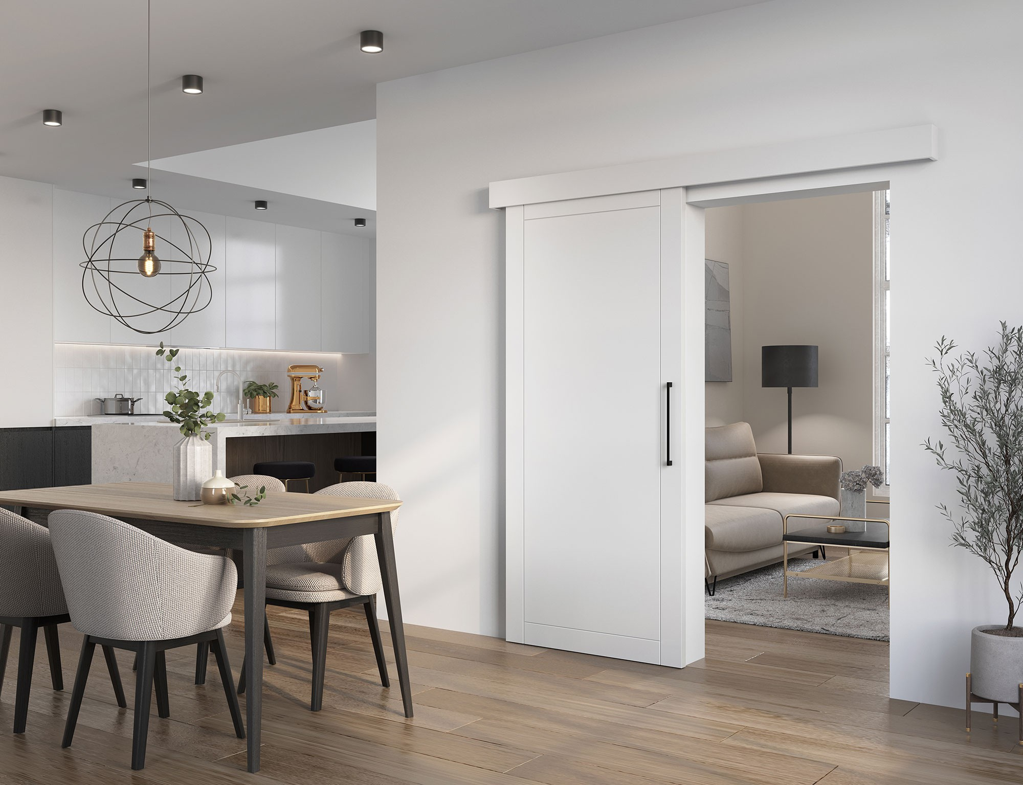 Minimalistický design a vysoce kvalitní materiály činí dveře Charlise ideálními pro obývací pokoj, kuchyň nebo ložnici. Měří 90 cm na šířku a 204 cm na výšku, což odpovídá standardním dveřním otvorům. Vyrobeny z laminované nábytkové desky, jsou k dispozici v polomatné bílé barvě (White U8681).Vybaveno mechanismem Laguna STANDARD 1990 s vodicí lištou o délce 195 cm, dveře Charlise se posouvají hladce a tiše. Sada obsahuje kryt z laminované nábytkové desky a černou plastovou rukojeť. Dveře mají zarážku, vozík a spodní vodítko, což zajišťuje bezpečnost a pohodlí.Instalace je jednoduchá, provádí se připevněním na zeď. Posuvné dveře Charlise jsou ideálním řešením pro ty, kteří si cení funkčnosti, estetiky a moderního designu. Minimalistický design a vysoce kvalitní materiály činí dveře Charlise ideálními pro obývací pokoj, kuchyň nebo ložnici. Měří 90 cm na šířku a 204 cm na výšku, což odpovídá standardním dveřním otvorům. Vyrobeny z laminované nábytkové desky, jsou k dispozici v matné bílé (White U8681) a matné černé (Black 190PE).Vybaveno mechanismem Laguna STANDARD 1990 s 195 cm kolejnicí, dveře Charlise se posouvají hladce a tiše. Sada obsahuje kryt vyrobený z laminované nábytkové desky a černou plastovou rukojeť. Dveře jsou k dispozici s funkcí tichého zavírání nebo bez ní a jsou dodávány se zarážkou, pojezdovým vozíkem a spodním vedením, což zajišťuje bezpečnost a snadné použití.Instalace je jednoduchá a zahrnuje montáž na stěnu. Posuvné dveře Charlise jsou ideálním řešením pro ty, kteří si cení funkčnosti, estetiky a moderního designu.