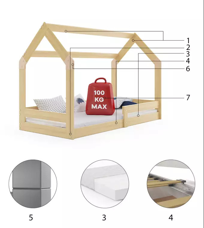 - Rám postele je vyroben z pevného borovicového dřeva