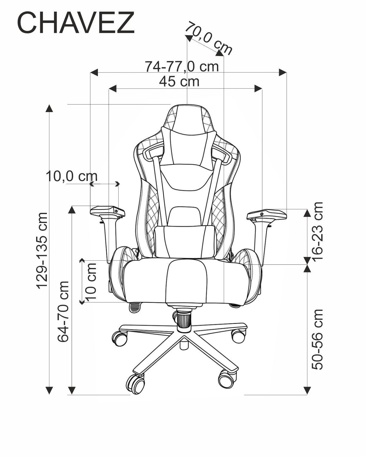 | Výška sedu - nastavitelná v cm | 50 cm |