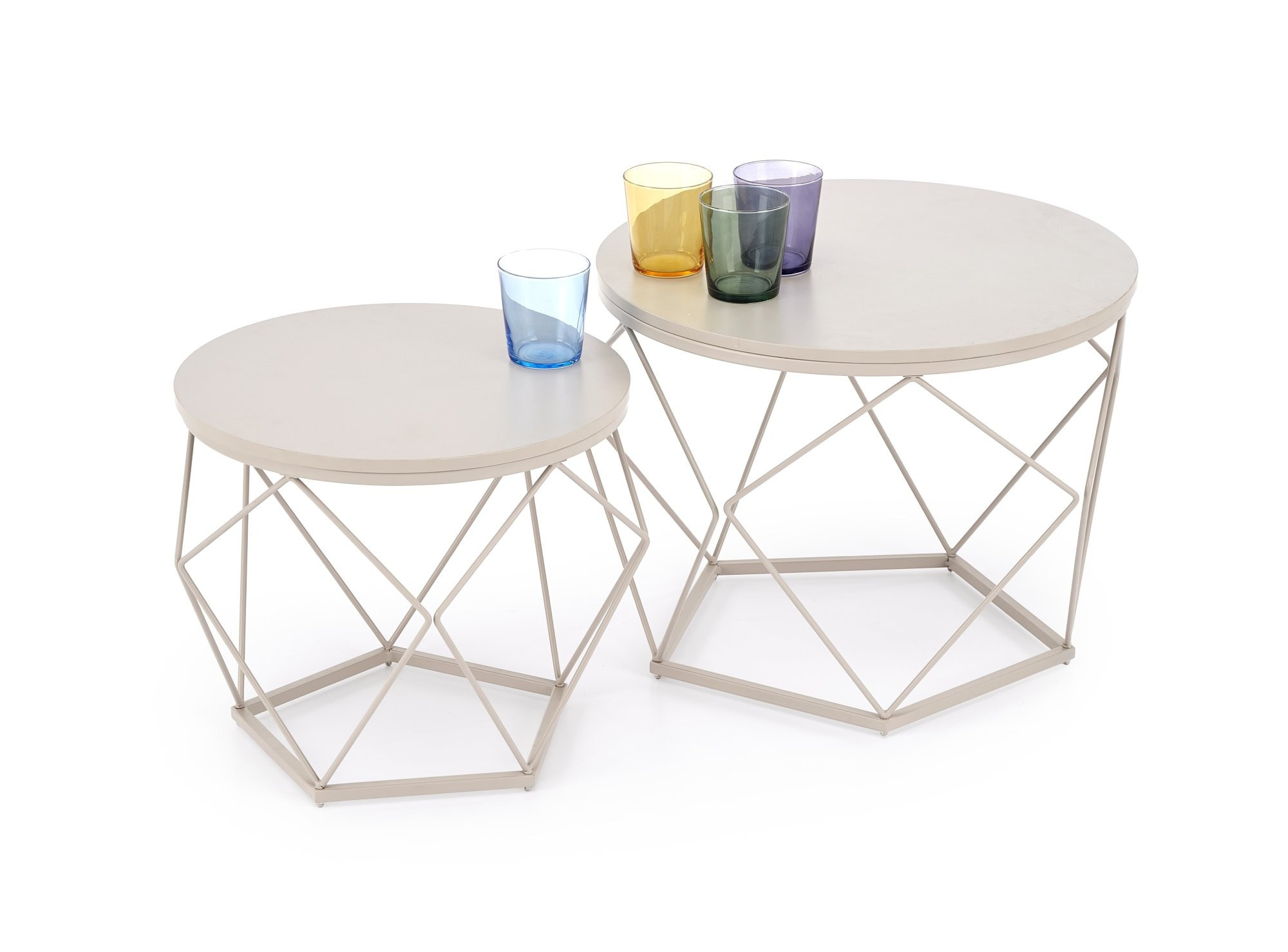 rozměry: 50/39 cm a 40/35 cm, sada 2 lavic, materiál: dýhovaná MDF / práškově lakovaná ocel, barva: kašmír
