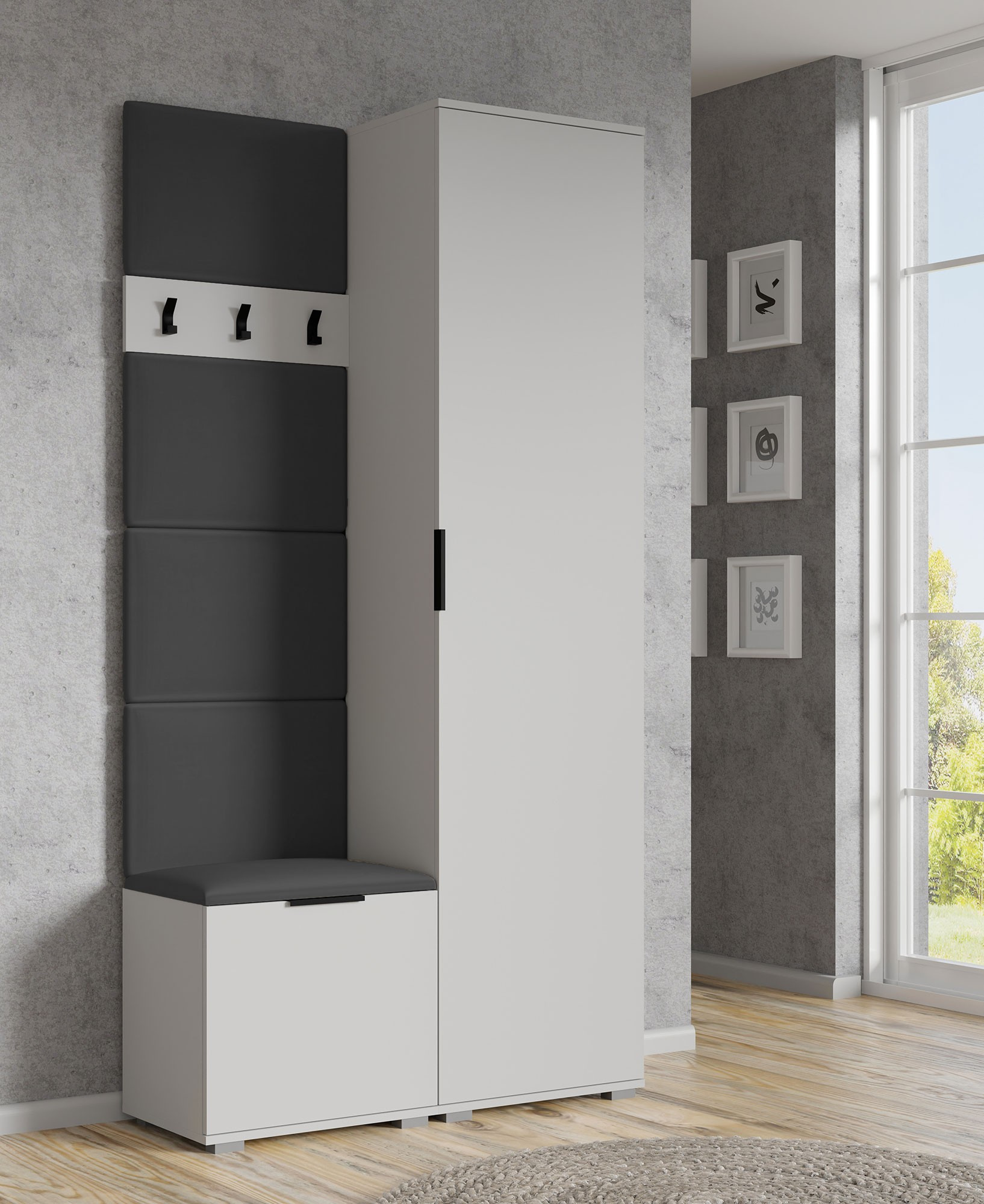 rozměry: 50/35 cm, materiál: laminovaná nábytková deska / tkanina BLUVEL #14 c. popel
