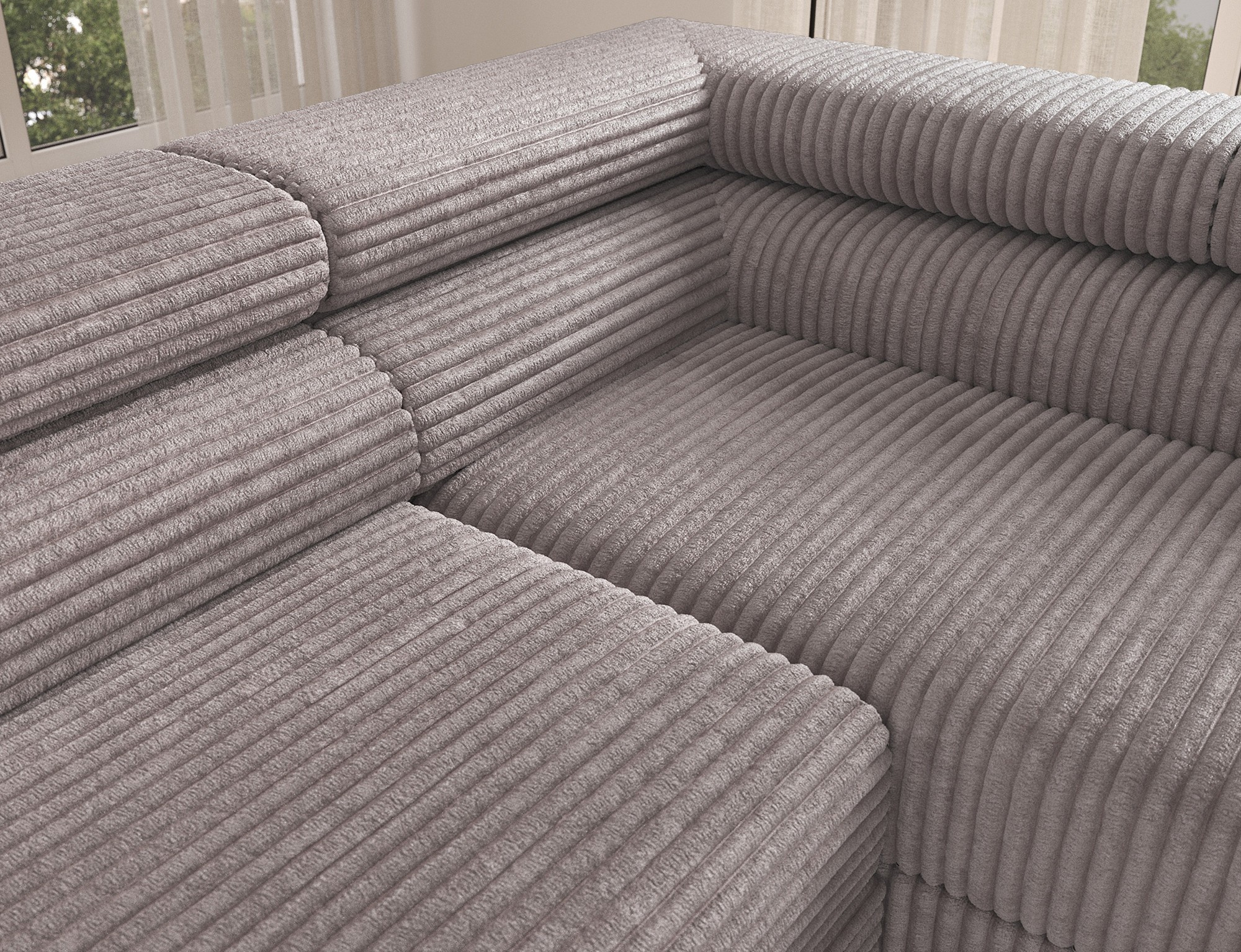 Rohová sedací souprava COLESIO je vyrobena z vysoce kvalitních materiálů, které zaručují dlouhou životnost a odolnost. Její elegantní design v kombinaci s moderními liniemi dodá vašemu interiéru nádech luxusu a sofistikovanosti. Díky pravému provedení se snadno přizpůsobí jakémukoli prostoru a stane se jeho přirozenou součástí.