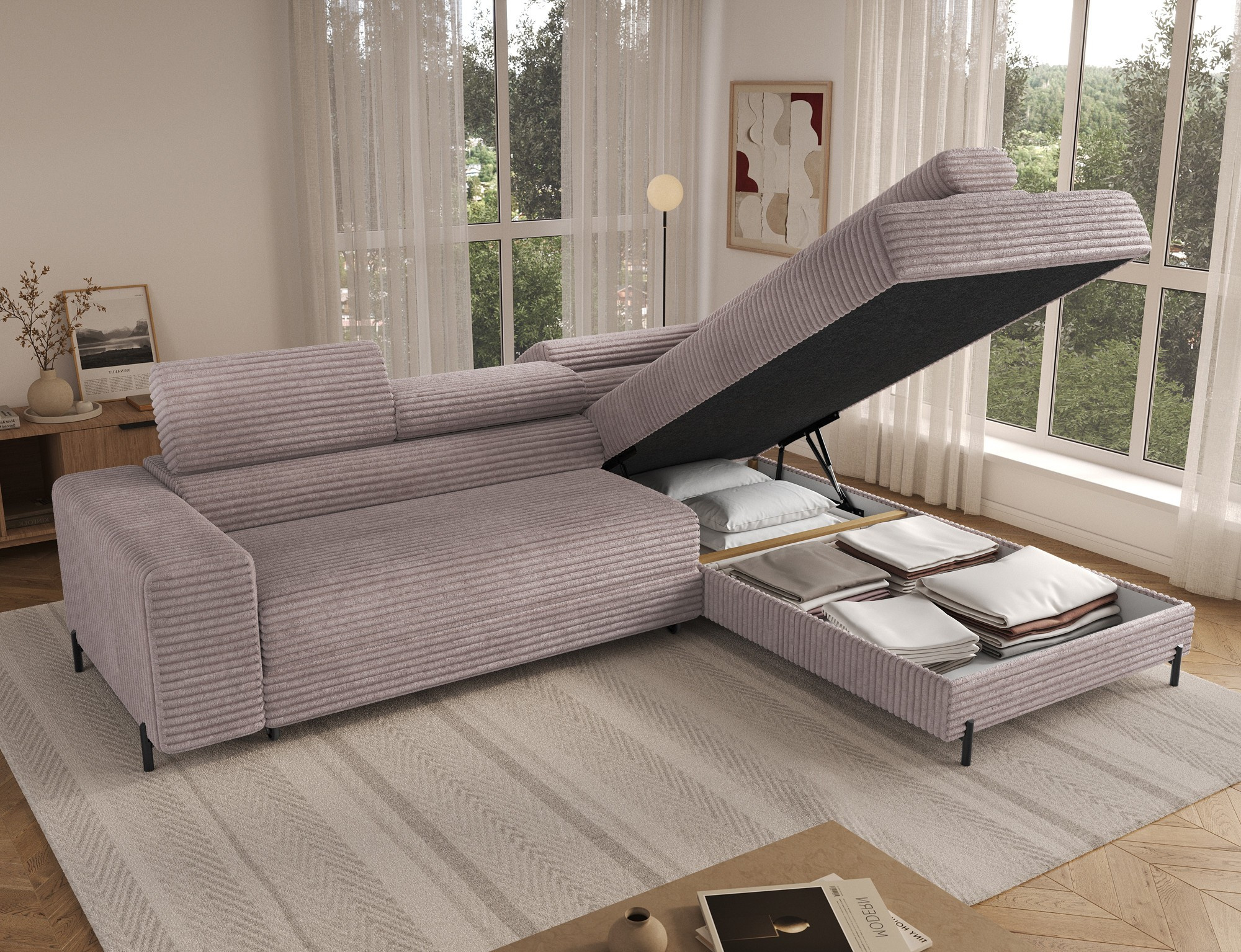 Tato sedací souprava je nejen krásná, ale také velmi praktická. Disponuje úložným prostorem, který vám umožní snadno uschovat deky, polštáře nebo jiné drobnosti, které chcete mít po ruce, ale zároveň je mít úhledně uklizené. Díky tomu bude váš obývací pokoj vždy vypadat upraveně a organizovaně.