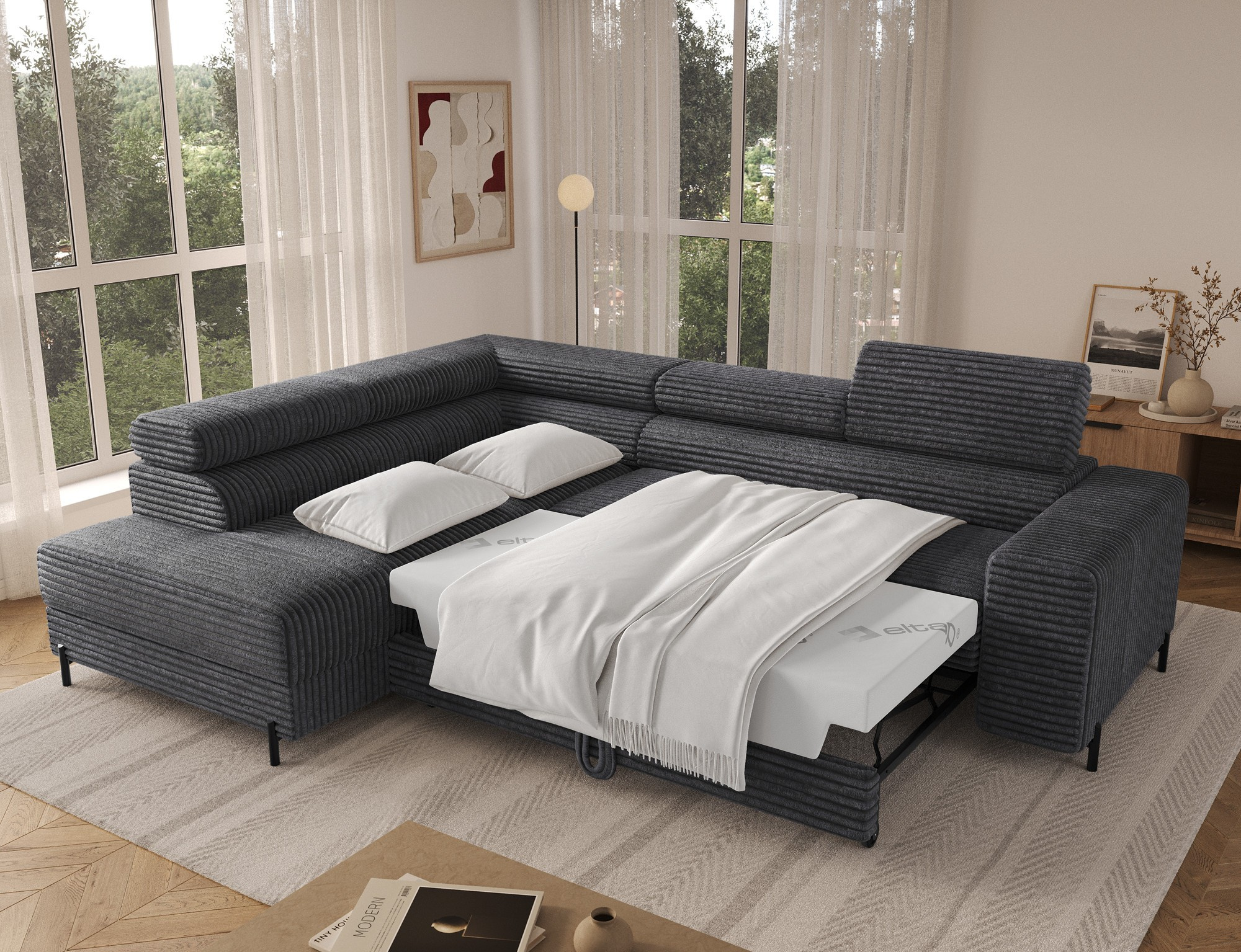 Rohová sedací souprava COLESIO je vyrobena z vysoce kvalitních materiálů, které zaručují dlouhou životnost a odolnost. Její elegantní design v kombinaci s moderními liniemi dodá vašemu interiéru nádech luxusu a sofistikovanosti. Díky pravému provedení se snadno přizpůsobí jakémukoli prostoru a stane se jeho přirozenou součástí.