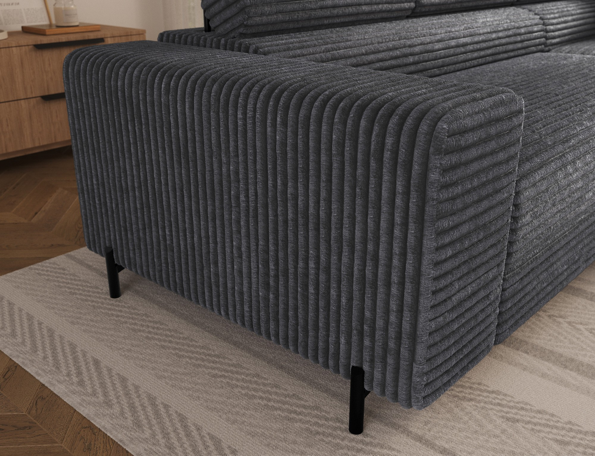 Rohová sedací souprava COLESIO je vyrobena z vysoce kvalitních materiálů, které zaručují dlouhou životnost a odolnost. Její elegantní design v kombinaci s moderními liniemi dodá vašemu interiéru nádech luxusu a sofistikovanosti. Díky pravému provedení se snadno přizpůsobí jakémukoli prostoru a stane se jeho přirozenou součástí.