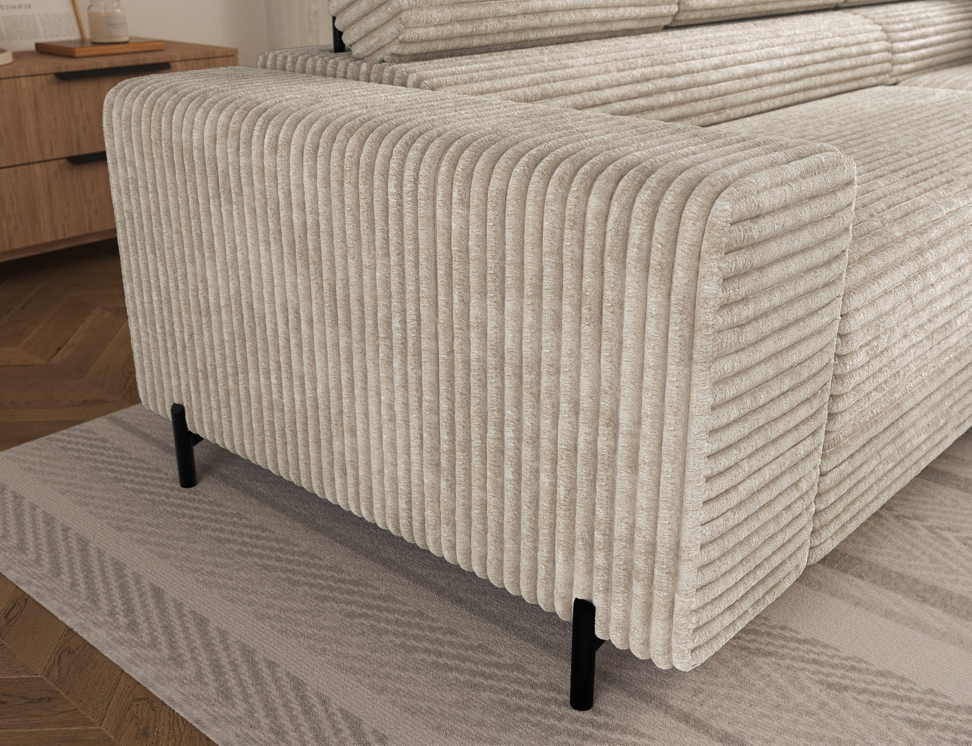 Rohová sedací souprava COLESIO je vyrobena z vysoce kvalitních materiálů, které zaručují dlouhou životnost a odolnost. Její elegantní design v kombinaci s moderními liniemi dodá vašemu interiéru nádech luxusu a sofistikovanosti. Díky pravému provedení se snadno přizpůsobí jakémukoli prostoru a stane se jeho přirozenou součástí.