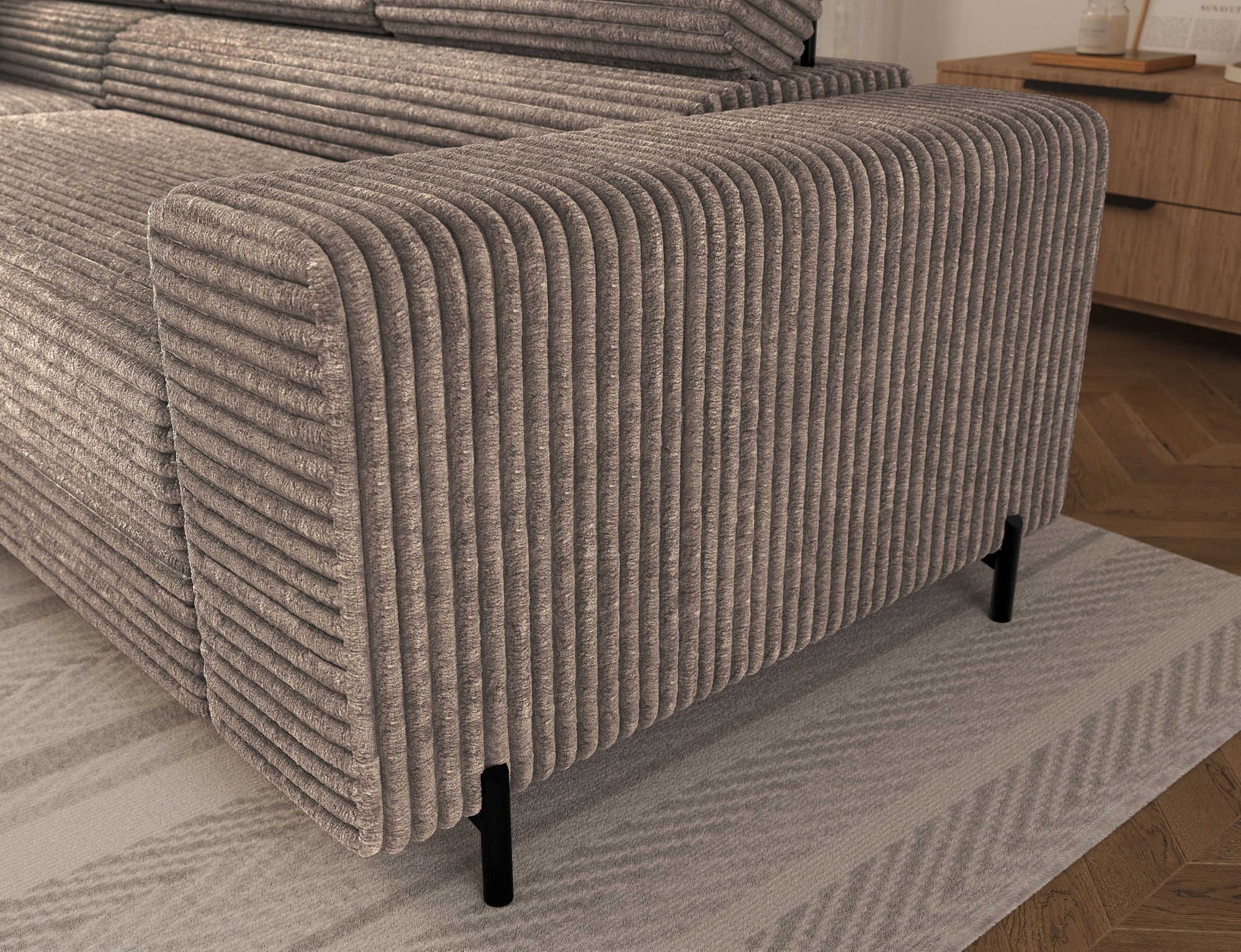 Rohová sedací souprava COLESIO je vyrobena z vysoce kvalitních materiálů, které zaručují dlouhou životnost a odolnost. Její elegantní design v kombinaci s moderními liniemi dodá vašemu interiéru nádech luxusu a sofistikovanosti. Díky pravému provedení se snadno přizpůsobí jakémukoli prostoru a stane se jeho přirozenou součástí.