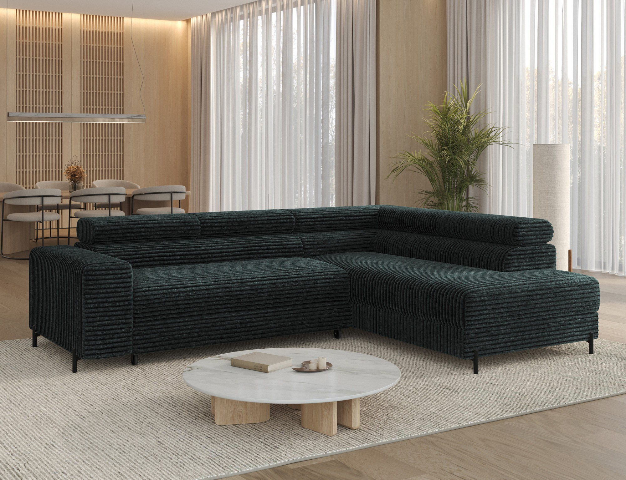 Rohová sedací souprava COLESIO je vyrobena z vysoce kvalitních materiálů, které zaručují dlouhou životnost a odolnost. Její elegantní design v kombinaci s moderními liniemi dodá vašemu interiéru nádech luxusu a sofistikovanosti. Díky pravému provedení se snadno přizpůsobí jakémukoli prostoru a stane se jeho přirozenou součástí.