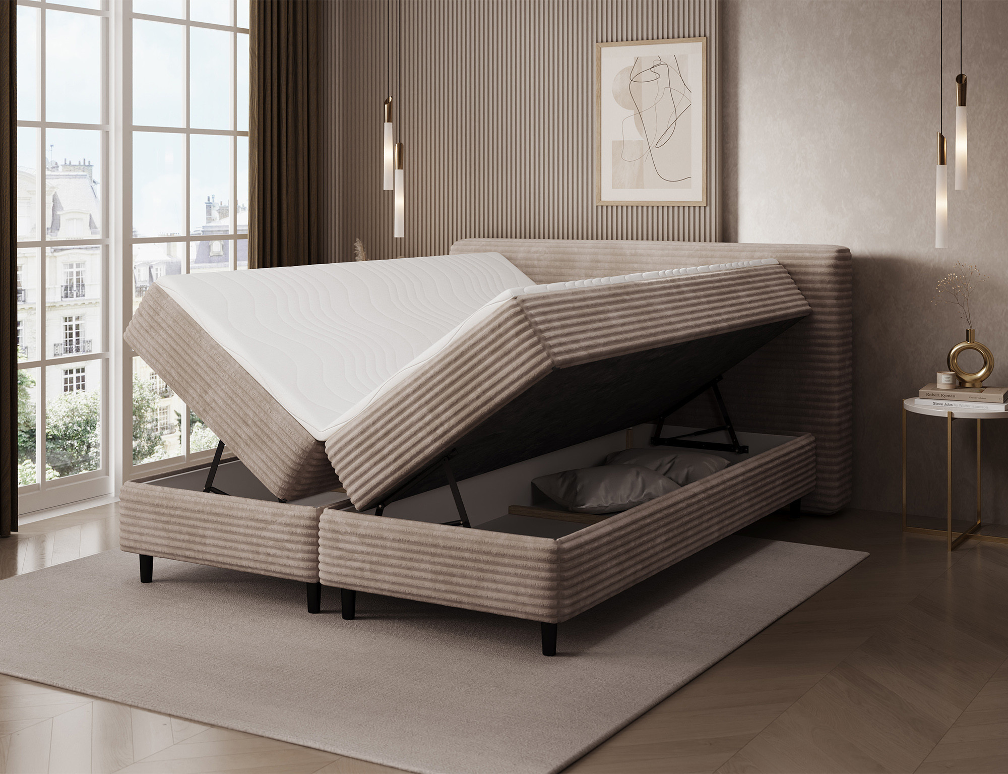 Objevte dokonalou kombinaci elegance, pohodlí a praktičnosti s naší čalouněnou postelí boxspring CORTIKO. Tato postel je navržena tak, aby splnila všechny vaše potřeby a přinesla do vaší ložnice nejen styl, ale i funkčnost.