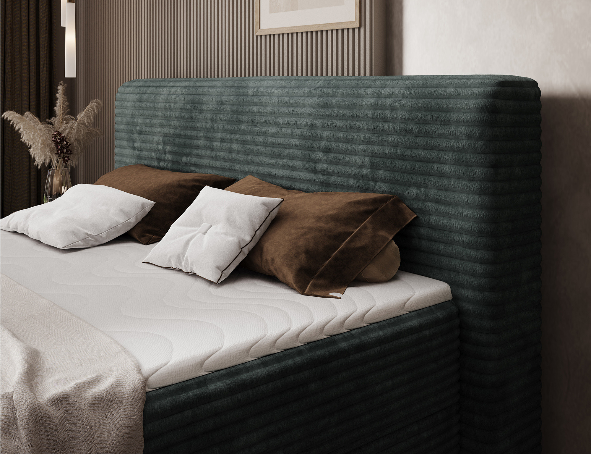Objevte dokonalou kombinaci elegance, pohodlí a praktičnosti s naší čalouněnou postelí boxspring CORTIKO. Tato postel je navržena tak, aby splnila všechny vaše potřeby a přinesla do vaší ložnice nejen styl, ale i funkčnost.