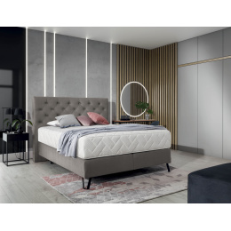Kontinentální postel Cortina doplní dekor ložnice v nenápadném, minimalistickém stylu. Jedná se o kus nábytku postavený s pevným boxspringem, černými kovovými nohami a ozdobným čelem. Boxspring Cortina je k dispozici ve 3 variantách spací plochy na výběr: 140x200 cm, 160x200 cm, 180x200 cm. Vyplnění opěrky hlavy pěnou poskytuje dodatečnou měkkou oporu pro hlavu. Kromě toho je opěrka hlavy zdobena prošíváním a šitím - dohromady tvoří desítky kosočtverců, což přidává na kouzlu nábytku. Důležitou součástí každé postele je také matrace, a v tomto případě zahrnujeme super pohodlnou matraci. Boxspring Cortina je dodáván s kapsovou matrací, což je produkt s kapsovými pružinami, které zvyšují úroveň pohodlí při odpočinku. Kromě výhod spojených s pohodlnou matrací nezapomeňte, že si můžete také vybrat barvu a texturu čalounické látky z naší rozsáhlé kolekce ELTAP.