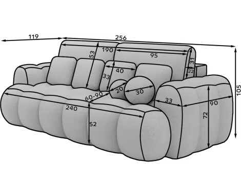 - Rozměry: Šířka 256 cm, Výška 105 cm, Hloubka 119 cm