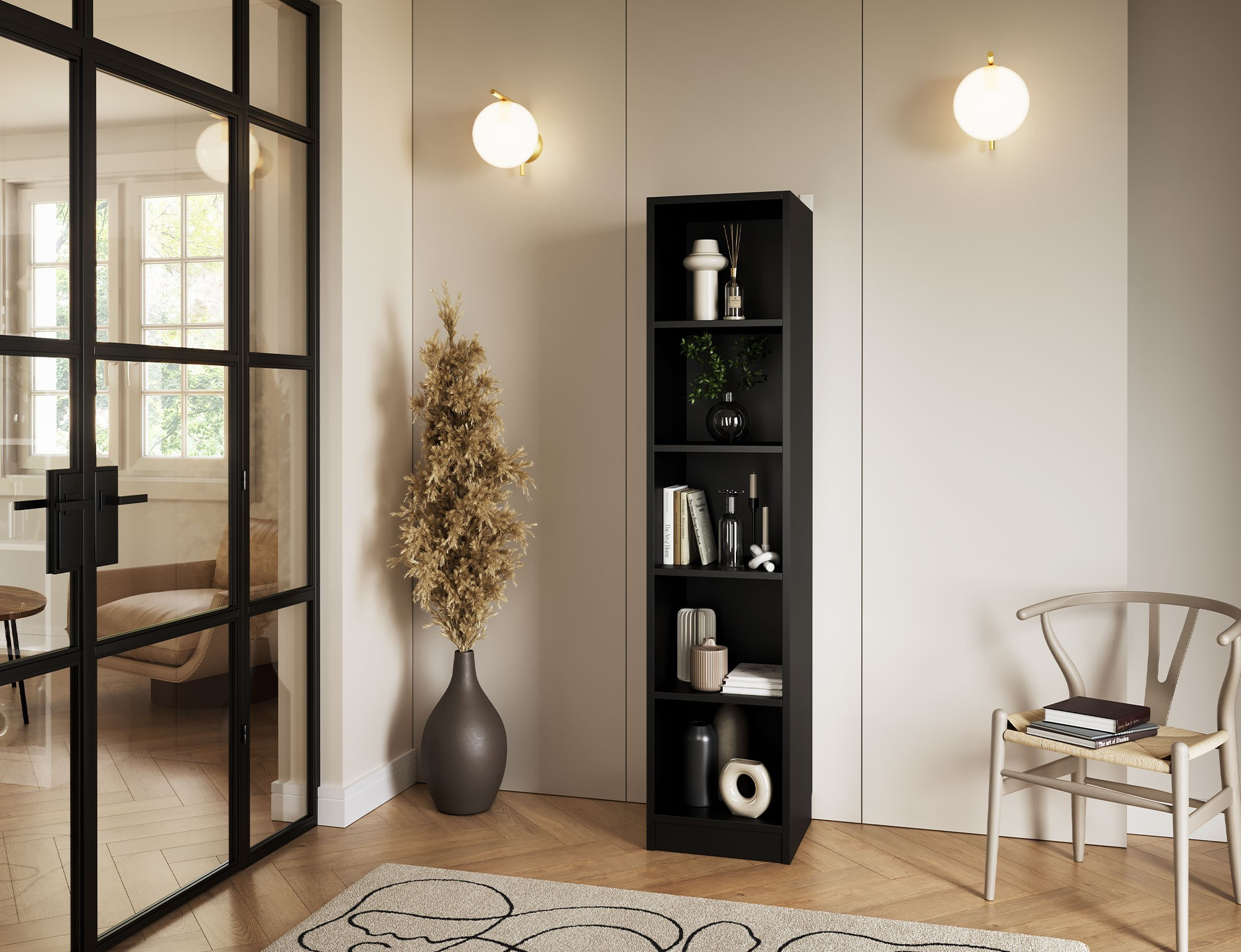 Police Craft je praktický a stylový kus nábytku, ideální pro jakýkoli interiér. S rozměry 40 cm na šířku, 180 cm na výšku a 40 cm do hloubky poskytuje dostatek úložného prostoru pro různé předměty. Zásuvka s nosností až 3 kg je ideální pro malé doplňky, zatímco černé plastové kluzáky zajišťují stabilitu police a chrání podlahu před poškrábáním.