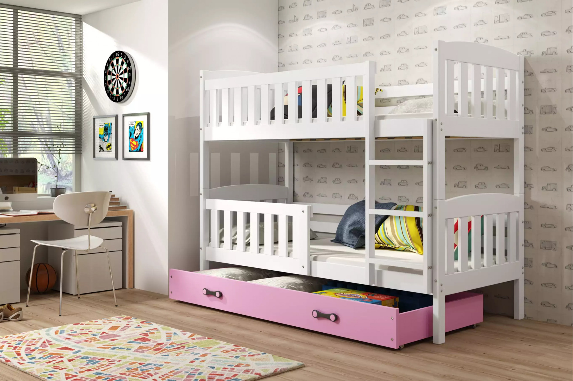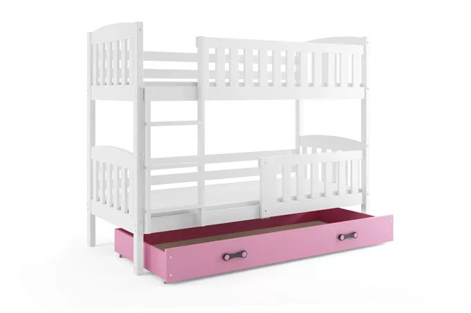 Dětská patrová postel KUBUS se šuplíkem 90x200 cm, bez matrace, Bílá/Růžová