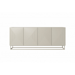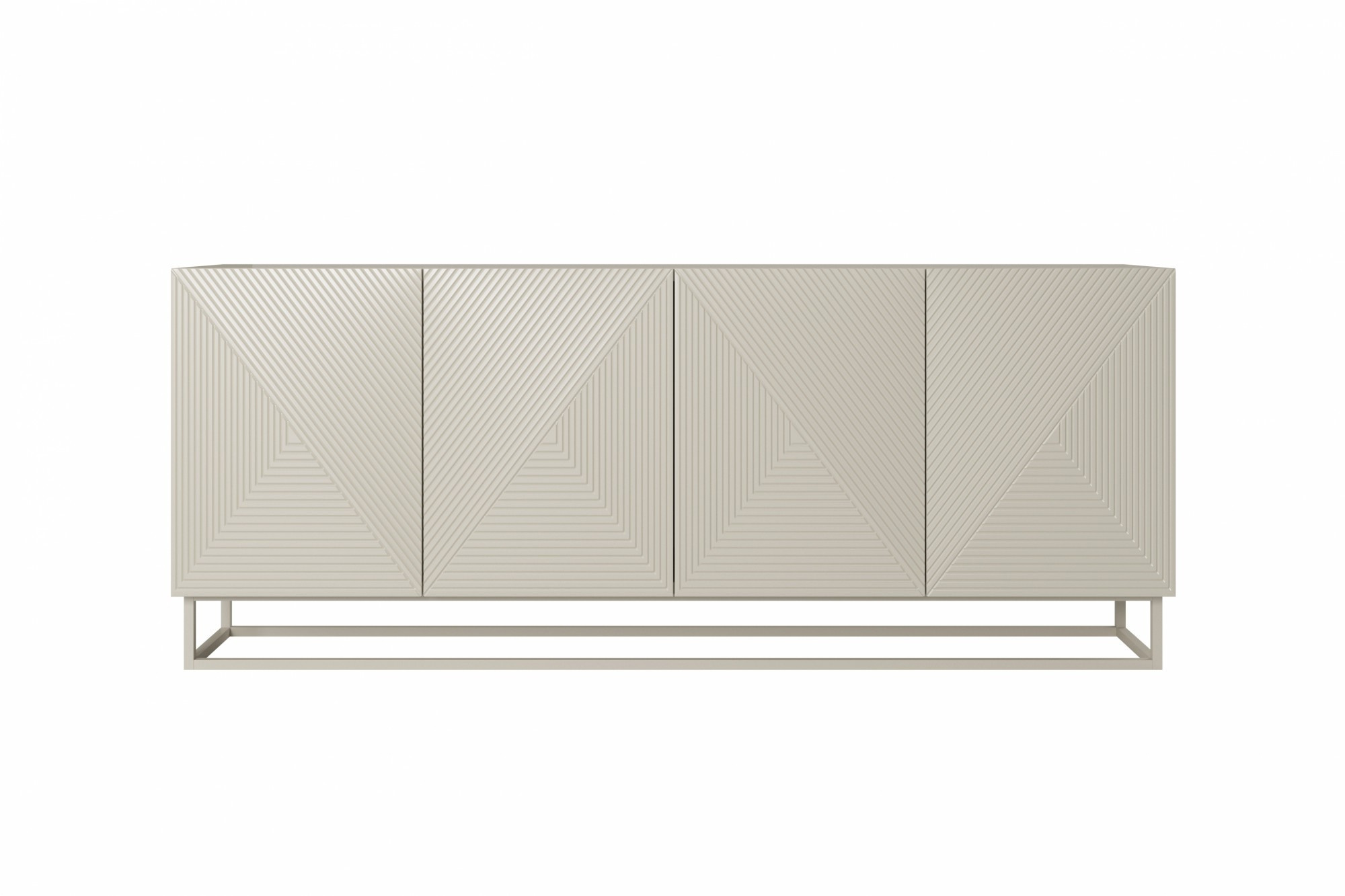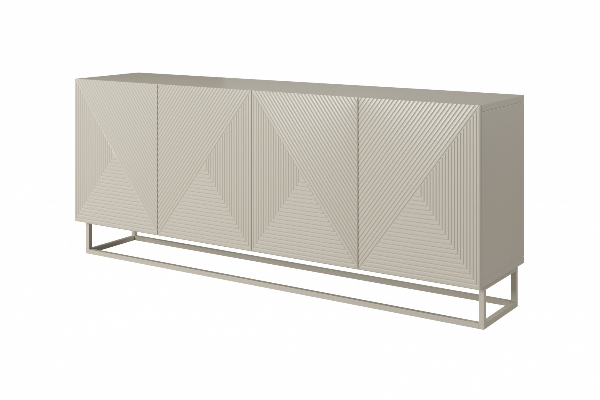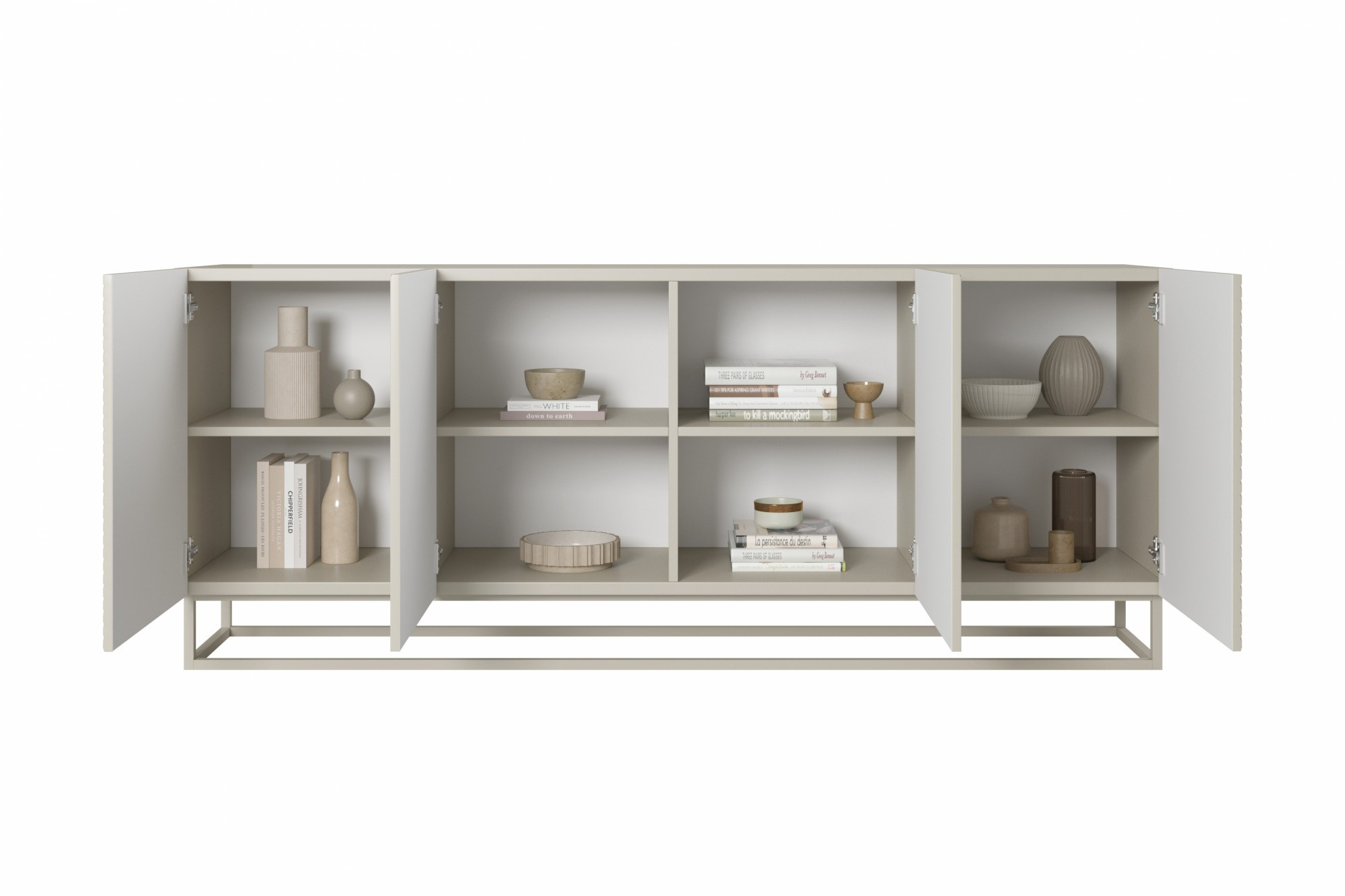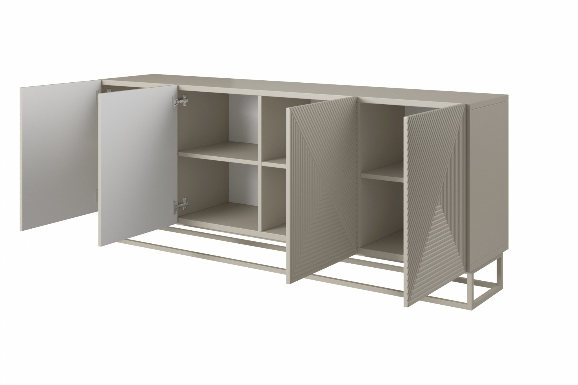 Čtyřdveřová komoda Asha s rýhovaným čelem a kovovým, kašmírovým rámem 200 cm - kašmír, Šířka: 200, Výška: 81, Hloubka: 43, Výška nožek: 16, Hloubka desky: , Montáž: