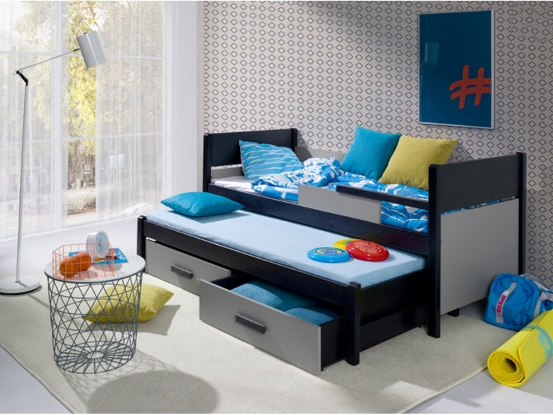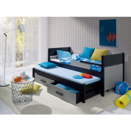 DANILO je dětská postel s výsuvných lůžkem pro druhou osobu z lakovaného borovicového dřeva (pouze konstrukce postele), barevné doplňky jsou z materiálu PVC. Hrany postele jsou kryty lištami ABS. V ceně postele jsou také 2 úložné šuplíky. Maximální nosnost 1 postele je 80 kg.