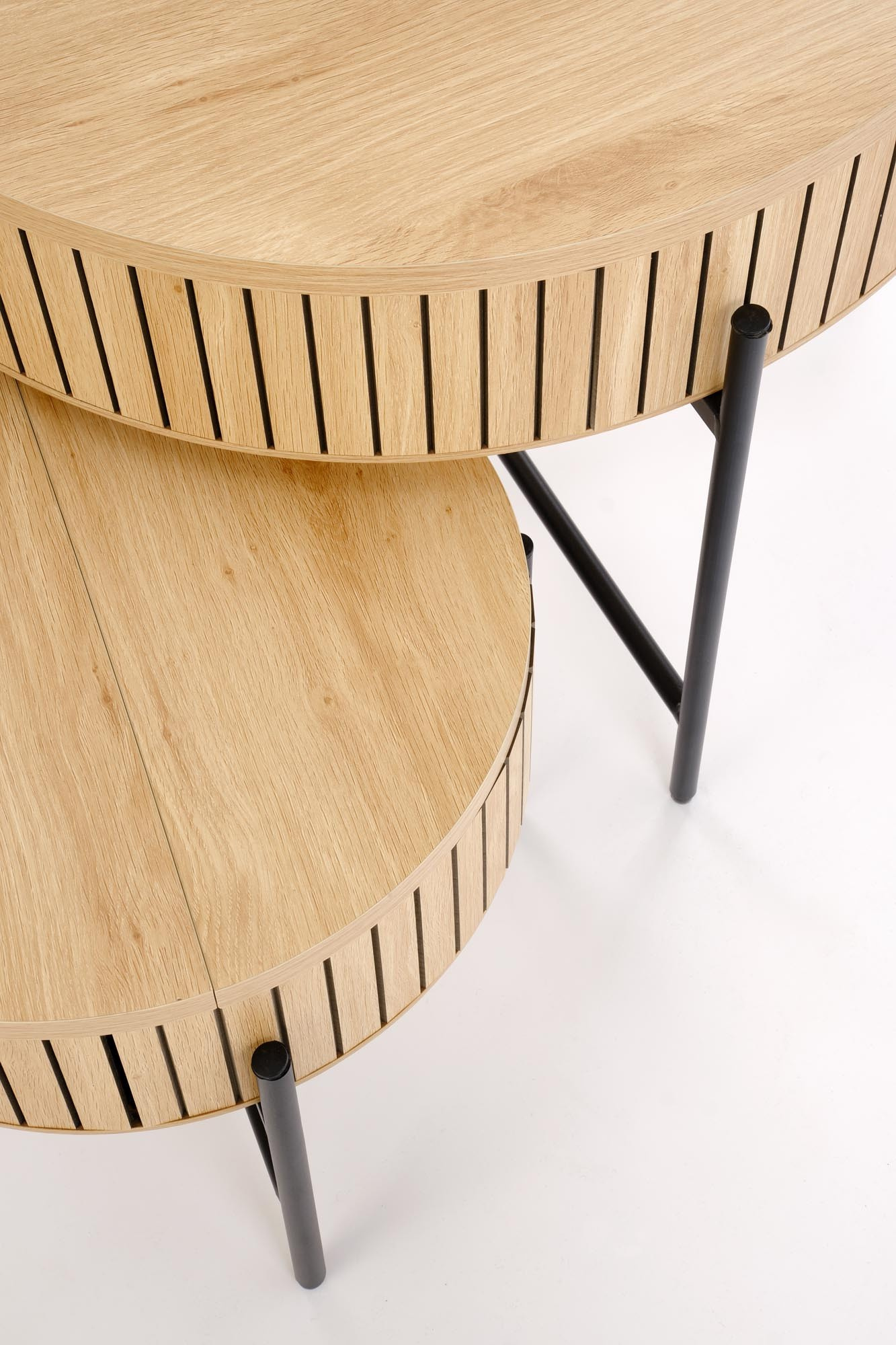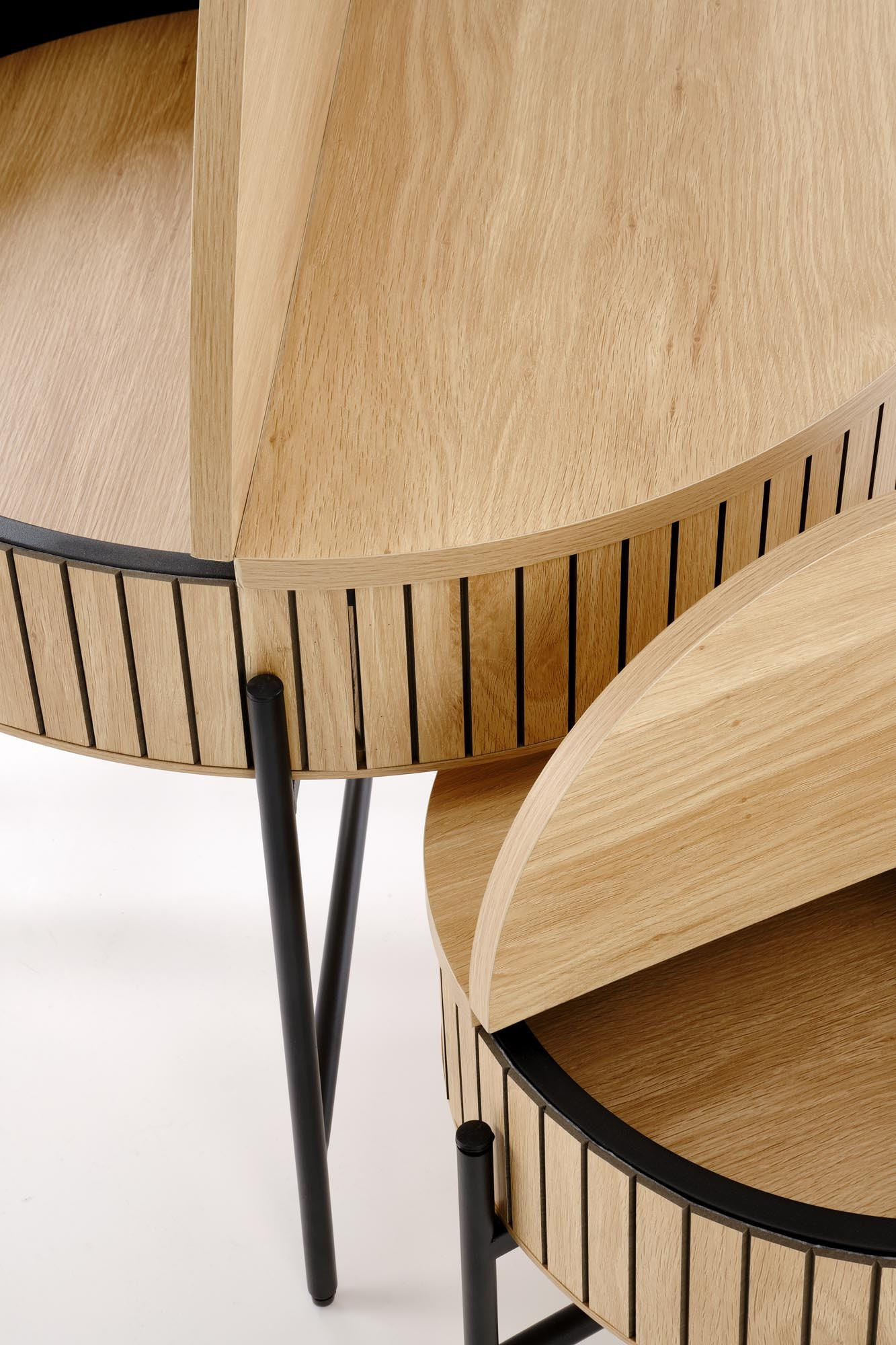 Konferenční stolky DANTE jsou vyrobeny z kvalitní MDF desky, která je známá svou odolností a dlouhou životností. Povrchová úprava v přírodním odstínu dodává stolku teplý a přívětivý vzhled, který se snadno kombinuje s různými styly interiéru. Robustní konstrukce z práškované oceli v černé barvě přidává stolku moderní a industriální nádech, který je v současné době velmi populární.