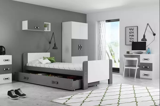 Dětská postel DAREK 80x200 cm, s matrací, Grafit/Bílá