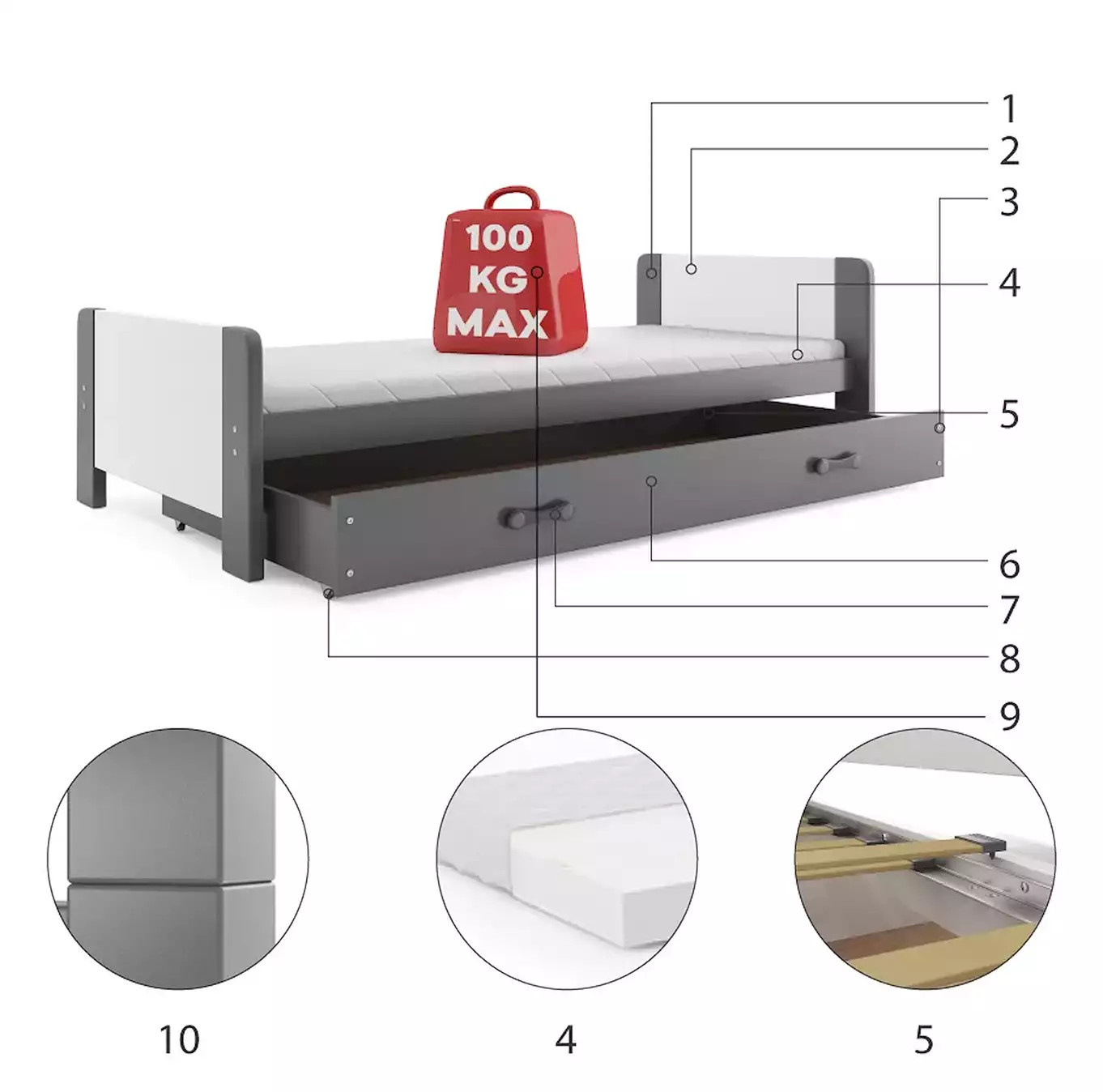 - Maximální zatížení postele je 100 kg