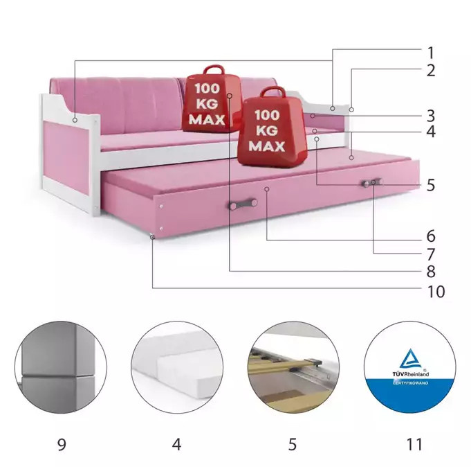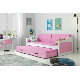 Dětská postel DAVID s matracemi, 90x200 cm, Bílá/Růžová
