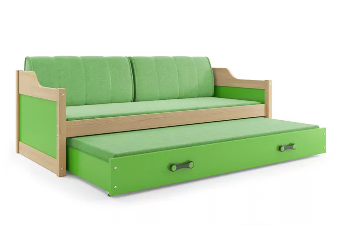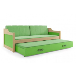 Dětská postel DAVID s matracemi, 90x200 cm, Přírodní/Zelená
