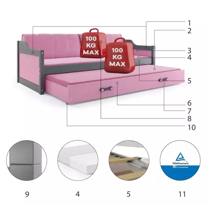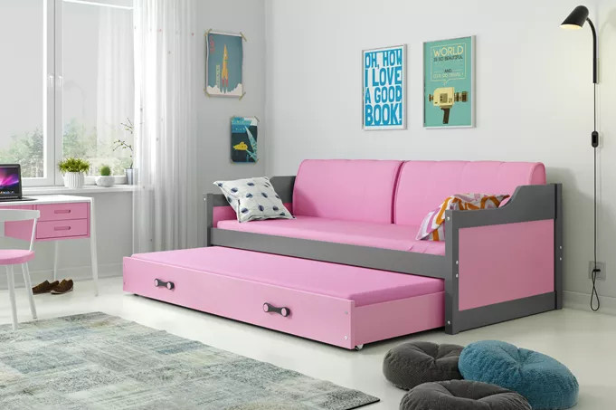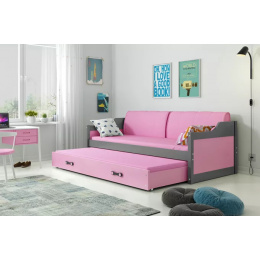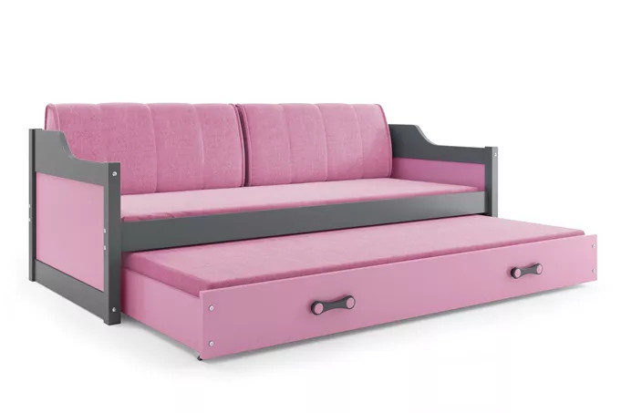 Dětská postel DAVID s matracemi, 90x200 cm, Grafit/Růžová