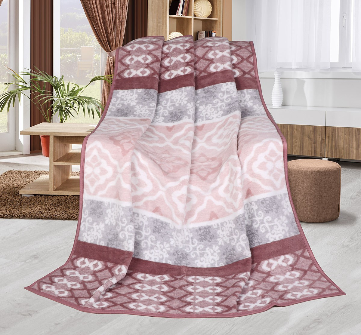 Vzorovaná deka Karmela je díky velkému podílu akrylového materiálu velmi příjemná na omak. Akryl nahrazuje vlněné materiály. Je hřejivá a příjemná na dotek. Je vhodná pro odpočinek, ale lze ji využít i jako letní přikrývku nebo přehoz na pohovku. Deka je oboustranná, lemována po obvodu lemovkou.