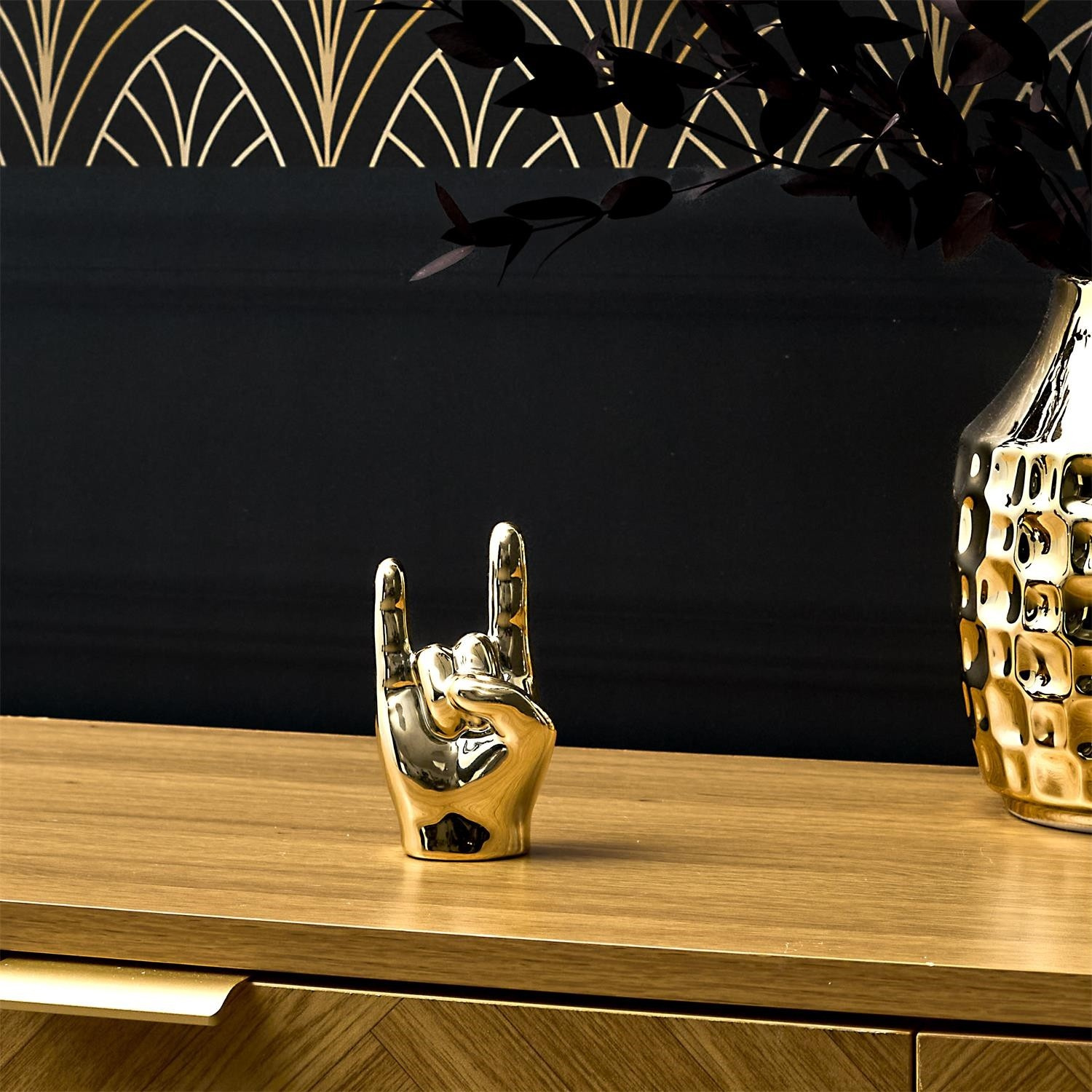 Dekorace, figurka Ruka malá Rock and Roll zlatá