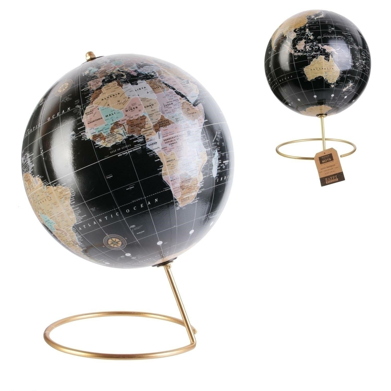 Kovový globus v klidné barevnosti bude zajímavým dekorativním prvkem kanceláře nebo obývacího pokoje.Tato zemská koule spektakulárně umístěná na podstavci nadchne fanoušky cestování. Rozměry: 21,5x29x21,5 cm