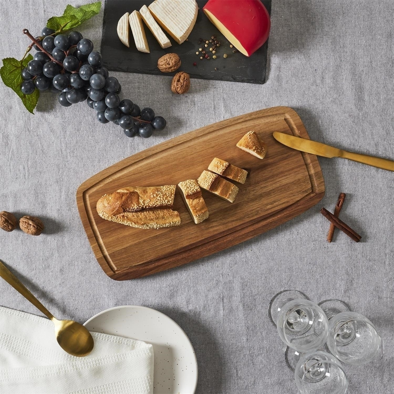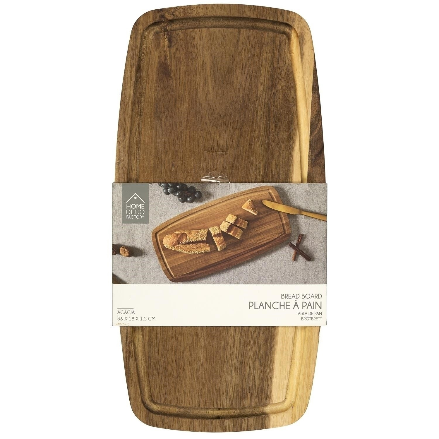 Prkénko na krájení pečiva z masivního akáciového dřeva není jen funkční kuchyňský doplněk. Deska je velmi praktická, protože kromě krájení na ní můžeme také servírovat pečivo, bagety nebo např. sýr. Deska v přírodní barvě doplní aranžmá našeho stolu
