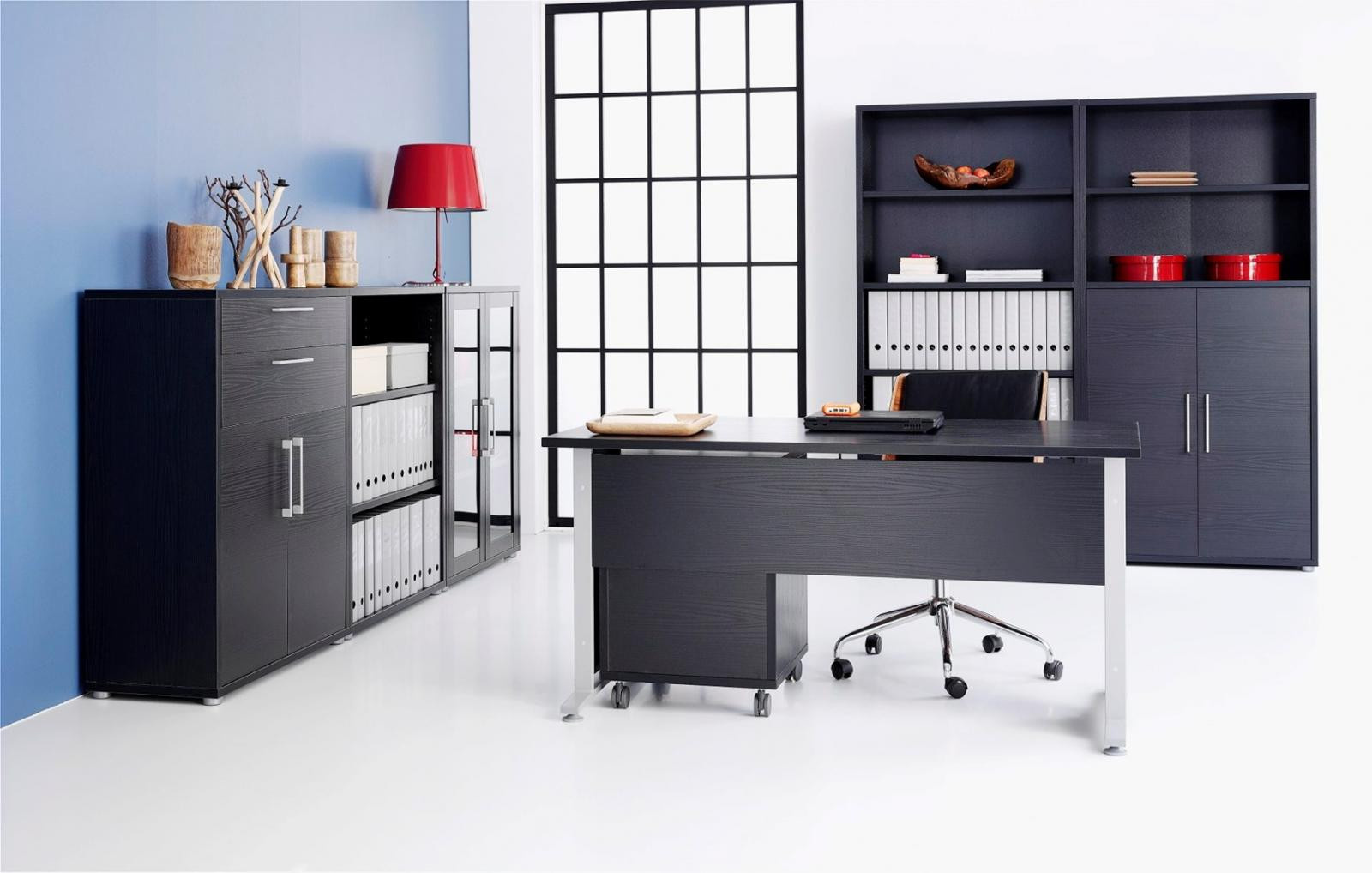 Potřebujete zařídit kancelář nebo domácí pracovnu? Kolekce kancelářského nábytku Office, Vám díky rozmanitosti prvků a dekorů, nabízí širokou škálu možností, jak si svůj pracovní prostor vybavit tak, aby byl účelný a praktický. Modelová řada Office je vyrobena z lamina v jednoduchém designu, takže Váš pracovní prostor bude působit vzdušně a Vy se v něm budete cítit příjemně. Všechny prvky sestavy Office jsou vyrobeny z lamina, které je odolné a snadné na údržbu. Při výrobě je kladen důraz na ekologii takže je nábytek vyráběný v souladu s ohledy na životní prostředí. Kolekce nábytku Office obsahuje vše, co budete v kanceláři i pracovně potřebovat a díky variabilním možnostem sestavení, si s ním můžete vybavit kancelář jakékoliv velikosti. Vše můžete přizpůsobit svému prostoru a svým potřebám. Psací stoly můžou být rovné, rohové, nebo také do tvaru U. Regály můžou být samostatné, nebo můžete kombinovat s dveřmi či zásuvkami. Pro inspiraci, jsou na doplňkových fotografiích vyobrazeny místnosti, které jsou tímto nábytkem vybaveny.