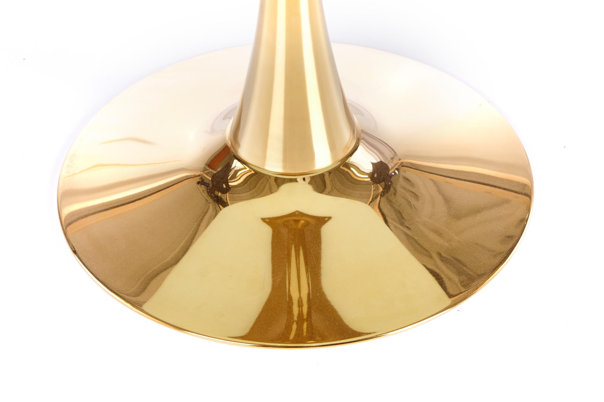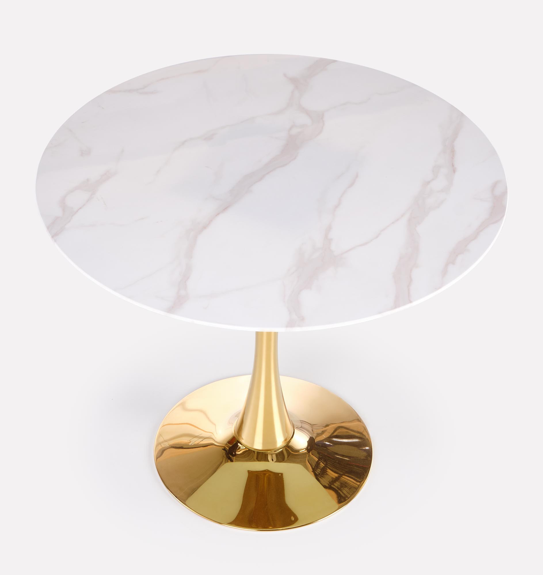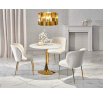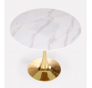 rozměry: fi90/75 cm, materiál: sklo / chromovaná ocel, barva: horní deska - bílý mramor, noha - zlatá