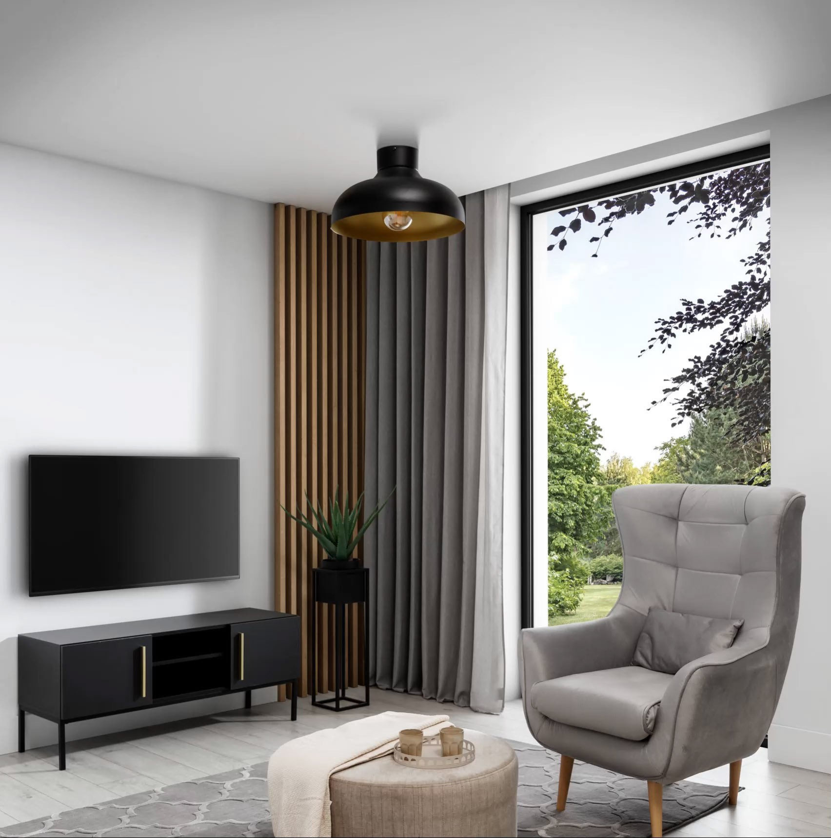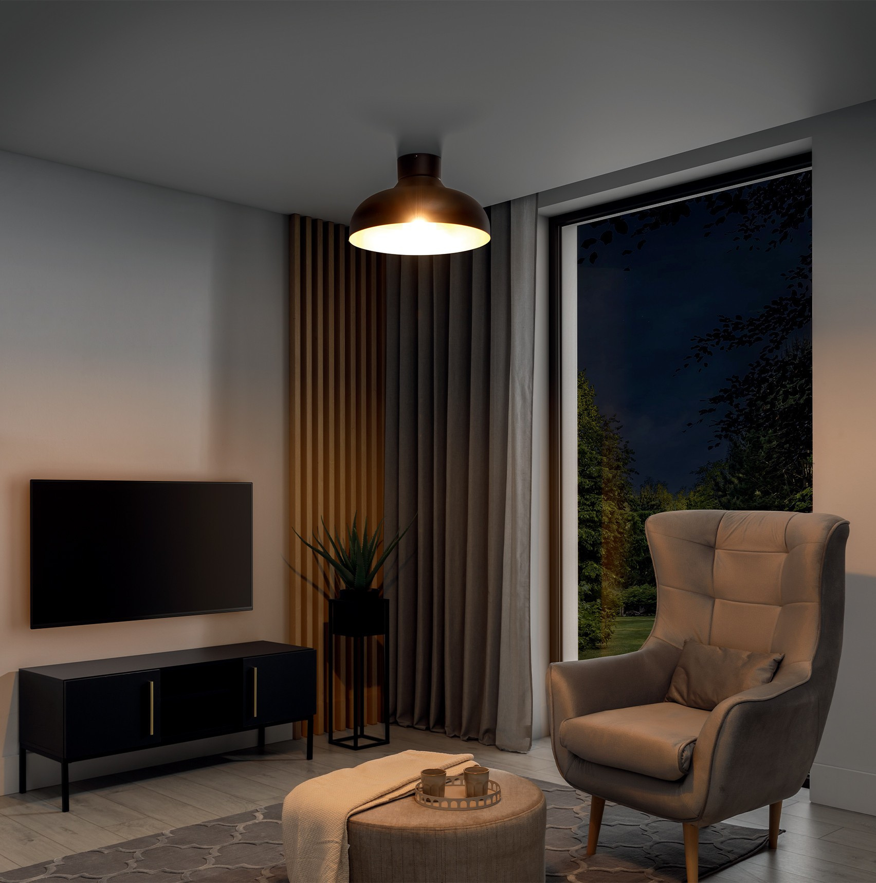 Stropní lampa Desolo je moderním a elegantním doplňkem vašeho interiéru. Jeho přesné rozměry jsou 40 cm na šířku, 21 cm na délku a 40 cm na hloubku, což z něj činí kompaktní, ale působivý kousek. Je vyroben z odolného materiálu - ocelového stínidla a základny. Lampa disponuje jedním světelným bodem, který umožňuje zaměřit světlo na vybrané místo, čímž vytváří příjemnou atmosféru a vynikající náladu v místnosti. Typ závitu je E27, což zajišťuje kompatibilitu s různými typy žárovek. Maximální světelný výkon je 15 W, což umožňuje efektivní osvětlení místnosti při úspoře energie. Stropní lampa Desolo má ochrannou třídu IP20, což znamená, že je vhodná pro použití v interiéru, poskytuje ochranu proti prachu, ale nedoporučuje se pro oblasti s vysokou vlhkostí. Jeho hmotnost je 1.9 kg, což usnadňuje instalaci a případné přemístění. Design lampy je výjimečný - její exteriér se pyšní elegantním černým povrchem, který jí dodává moderní charakter, zatímco interiér stínidla je zdoben zlatou barvou, což přidává nádech luxusu a elegance. Stropní lampa Desolo je ideální volbou pro ty, kteří hledají kombinaci funkčnosti, designu a jedinečné atmosféry ve svém interiéru.