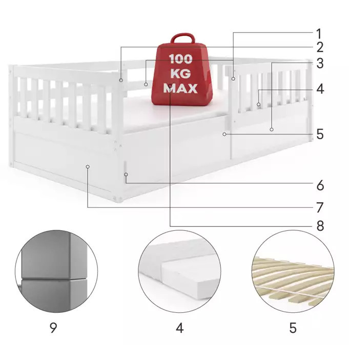 - Maximální zatížení postele je 100 kg