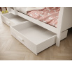 Patrová postel Jori je skvělou volbou pro rodiče, kteří hledají funkční a stylové řešení do dětského pokoje. Díky své promyšlené konstrukci poskytuje nejen pohodlná místa na spaní pro dvě osoby, ale také dodatečný úložný prostor. Dvě prostorné zásuvky umístěné pod spodní postelí jsou ideálním místem na ložní prádlo, hračky, oblečení nebo jiné dětské doplňky, což pomáhá udržovat pořádek v pokoji. Postel Jori spojuje moderní design s vysokou kvalitou zpracování, což zajišťuje, že bude sloužit po mnoho let. Pevná konstrukce a bezpečné, zaoblené hrany zajišťují pohodlí a bezpečnost pro malé děti. Díky tomu se postel hodí jak do pokoje chlapce, tak i dívky, vnášejíc do interiéru útulnou a funkční atmosféru.