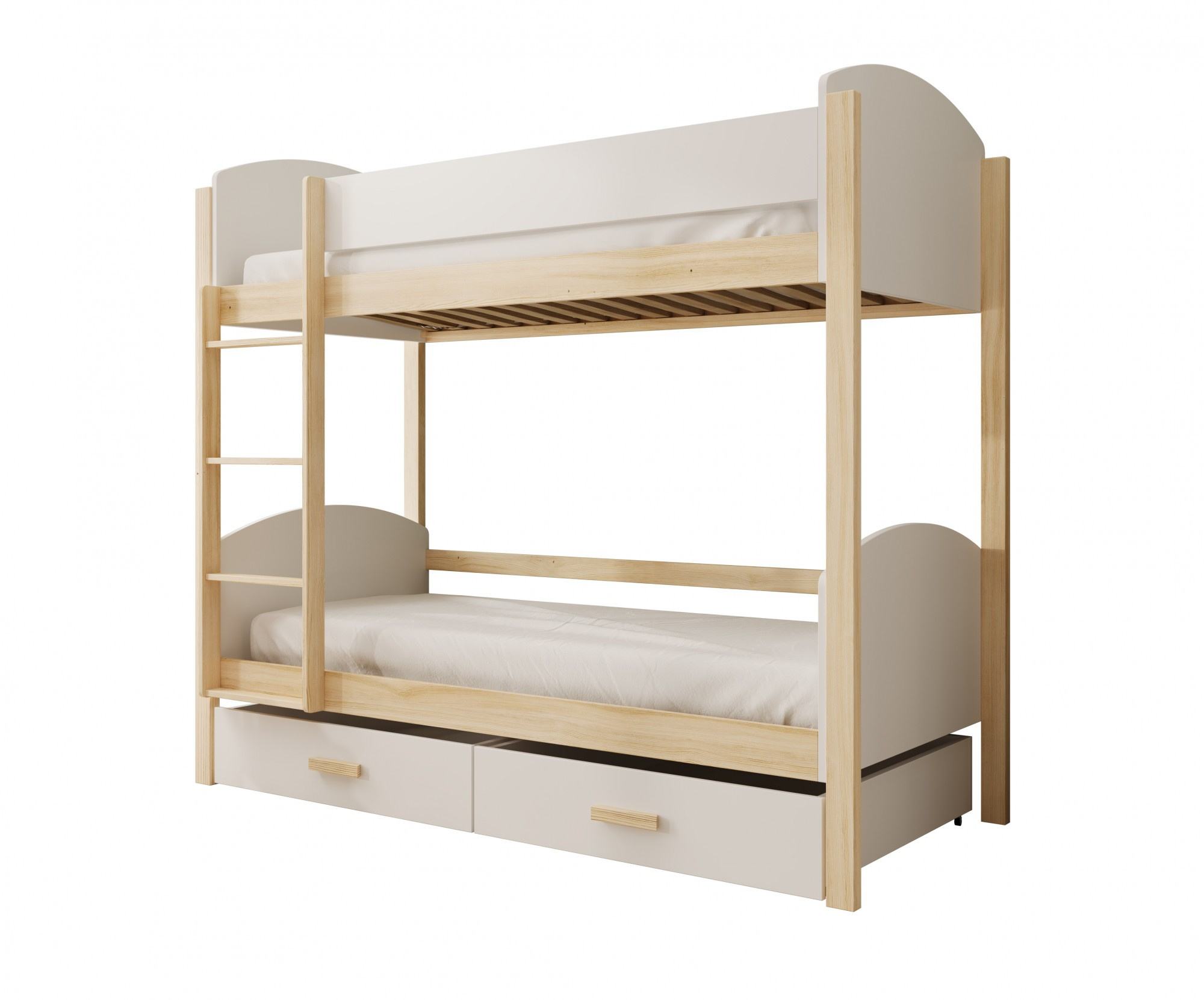 Dětská Patrová Postel Jori 200x90 s matrací Bílá+Borovice