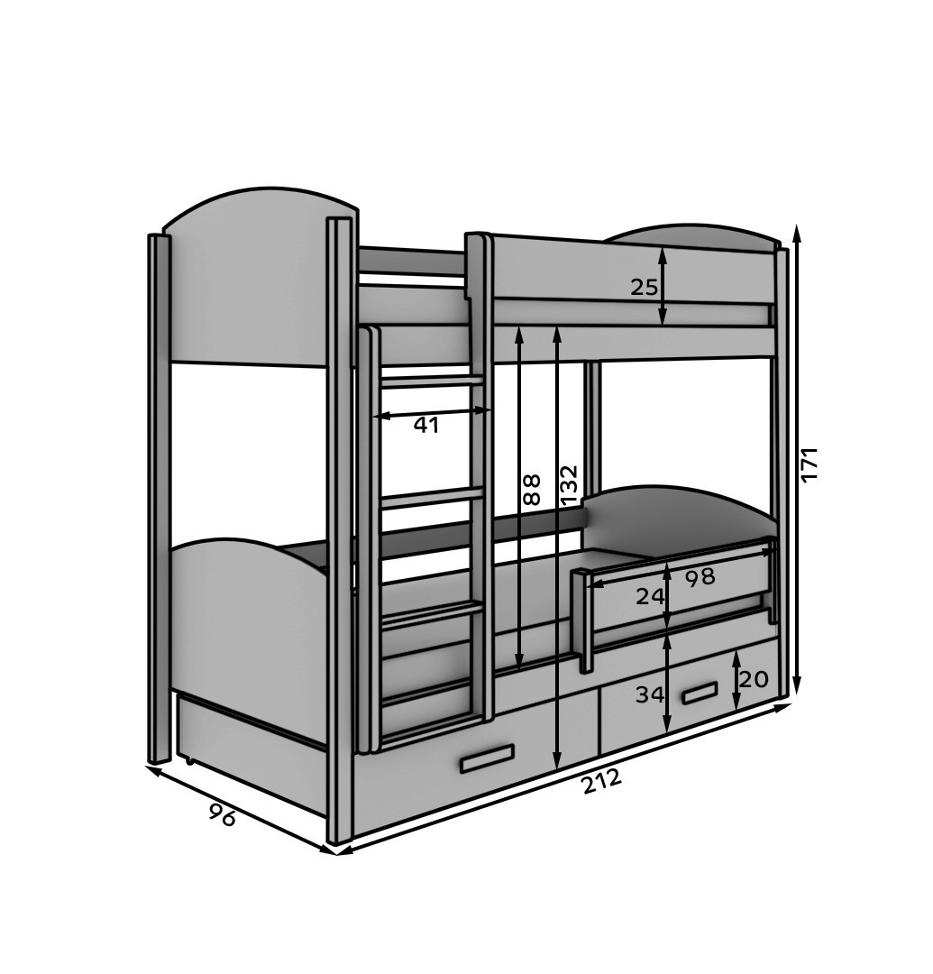 Patrová postel Jori je skvělou volbou pro rodiče, kteří hledají funkční a stylové řešení do dětského pokoje. Díky své promyšlené konstrukci poskytuje nejen pohodlná místa na spaní pro dvě osoby, ale také dodatečný úložný prostor. Dvě prostorné zásuvky umístěné pod spodní postelí jsou ideálním místem na ložní prádlo, hračky, oblečení nebo jiné dětské doplňky, což pomáhá udržovat pořádek v pokoji. Postel Jori spojuje moderní design s vysokou kvalitou zpracování, což zajišťuje, že bude sloužit po mnoho let. Pevná konstrukce a bezpečné, zaoblené hrany zajišťují pohodlí a bezpečnost pro malé děti. Díky tomu se postel hodí jak do pokoje chlapce, tak i dívky, vnášejíc do interiéru útulnou a funkční atmosféru.