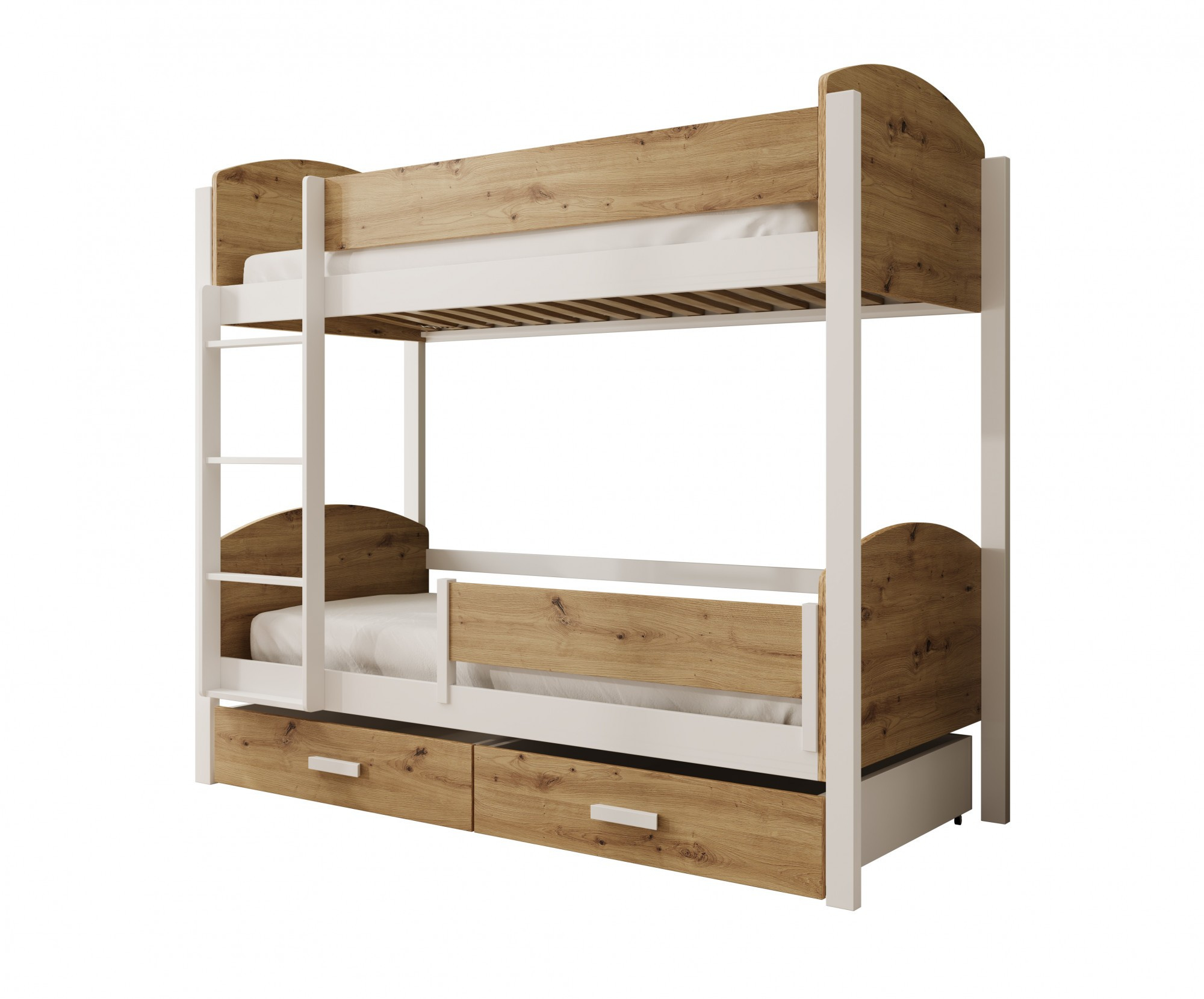 Patrová postel Jori se zábranou je vynikající volbou pro rodiče hledající funkční a stylové řešení do dětského pokoje. Díky své promyšlené konstrukci poskytuje nejen pohodlná místa na spaní pro dvě osoby, ale také dodatečný úložný prostor. Dvě prostorné zásuvky umístěné pod spodní postelí jsou ideálním místem na ložní prádlo, hračky, oblečení nebo jiné dětské doplňky, což pomáhá udržovat pořádek v pokoji. Postel Jori s bariérkou spojuje moderní design s vysokou kvalitou zpracování, což zajišťuje, že bude sloužit po mnoho let. Solidní konstrukce a bezpečné, zaoblené hrany zajišťují pohodlí a bezpečnost pro malé děti, zatímco dodatečná ochranná zábrana zaručuje klidný spánek bez rizika vypadnutí. Díky tomu se postel hodí jak do pokoje chlapce, tak i dívky, vnášejíc do interiéru útulnou a funkční atmosféru.