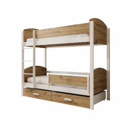 Dětská Patrová Postel Jori s zábranou 200x90 Bílá+Borovice