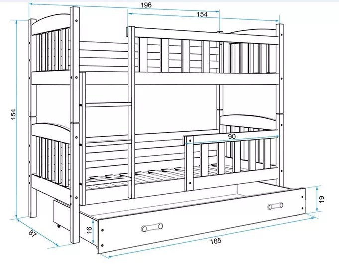 - Rám postele - vyrobený z borovicového dřeva, natřený vodním lakem.