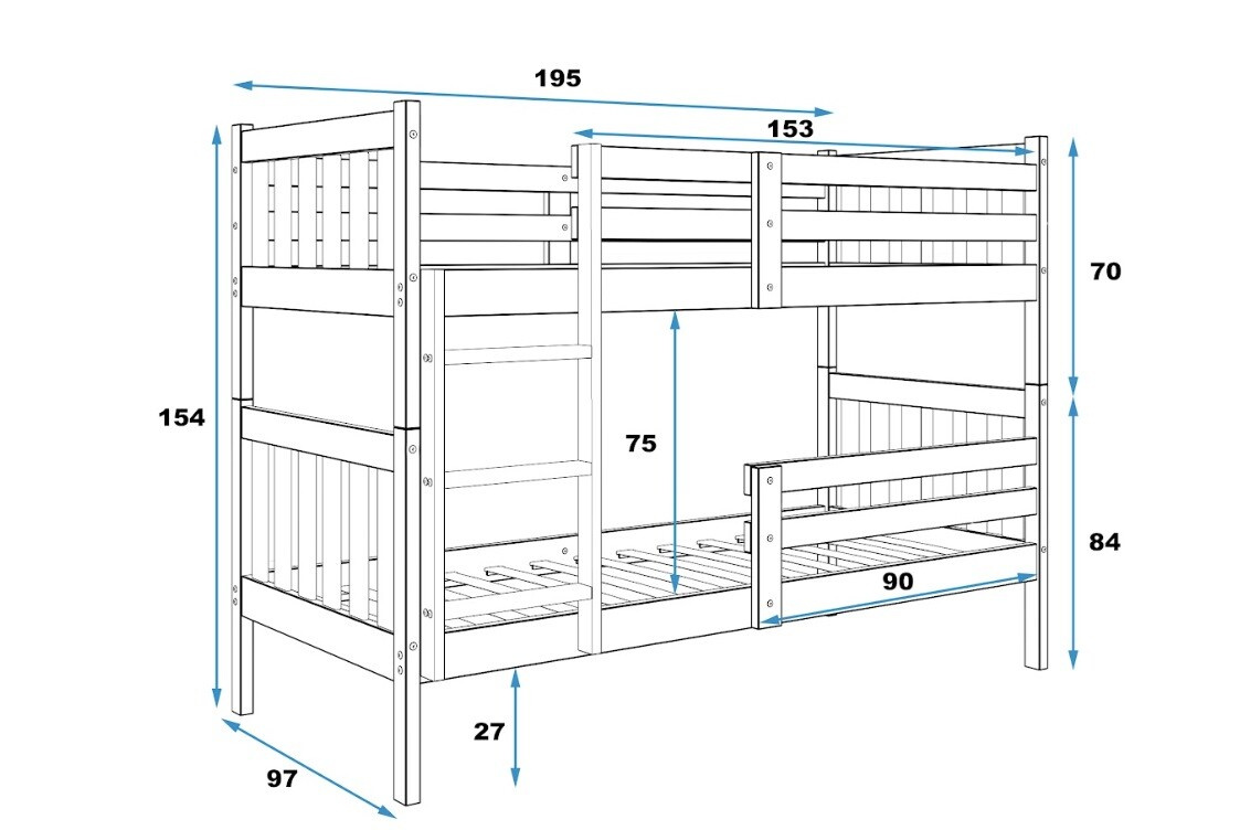 Dětská patrová postel KACPER Borovice 190 x 90 cm, s matracemi