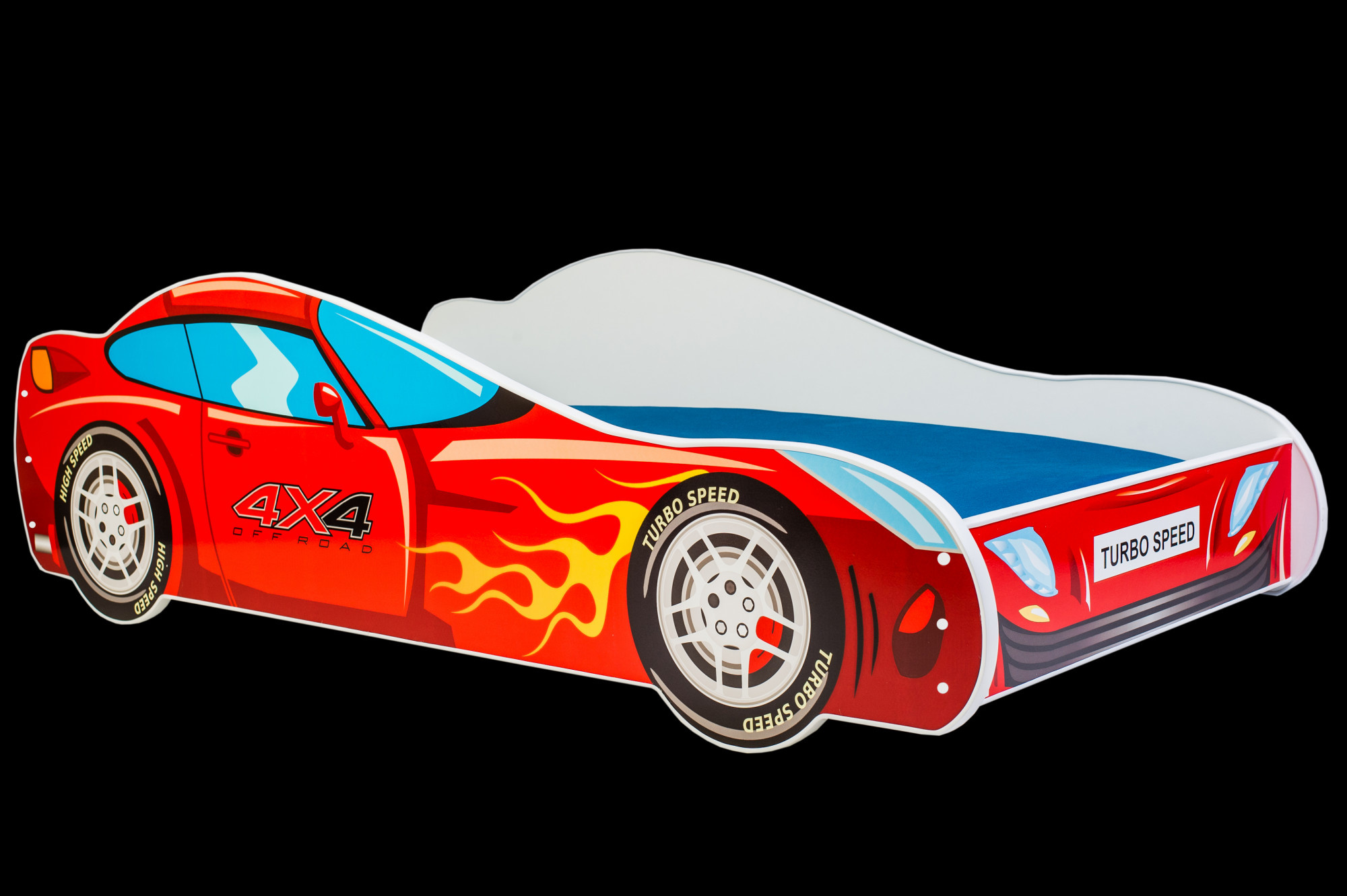 Jednolůžková postel CAR 4x4 je ideální volbou pro malé milovníky aut a motorismu. Zajímavý design umožní vašemu dítěti cítit se jako skutečný závodní jezdec. Dále je možné objednat LED osvětlení, které jistě oživí interiér a vytvoří jedinečnou atmosféru v pokoji vašeho dítěte. V procesu výroby byly použity ekologické vodní barvy, které jsou bezpečné a odolné vůči mechanickému poškození. Navíc postel nemá ostré rohy a grafika je chráněna laminátem.