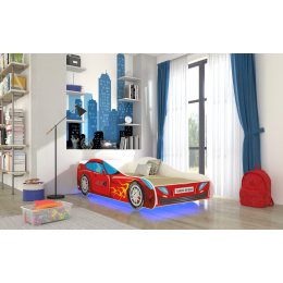 Postel s matrací a LED osvětlením AUTO 4x4 160x80 Červená