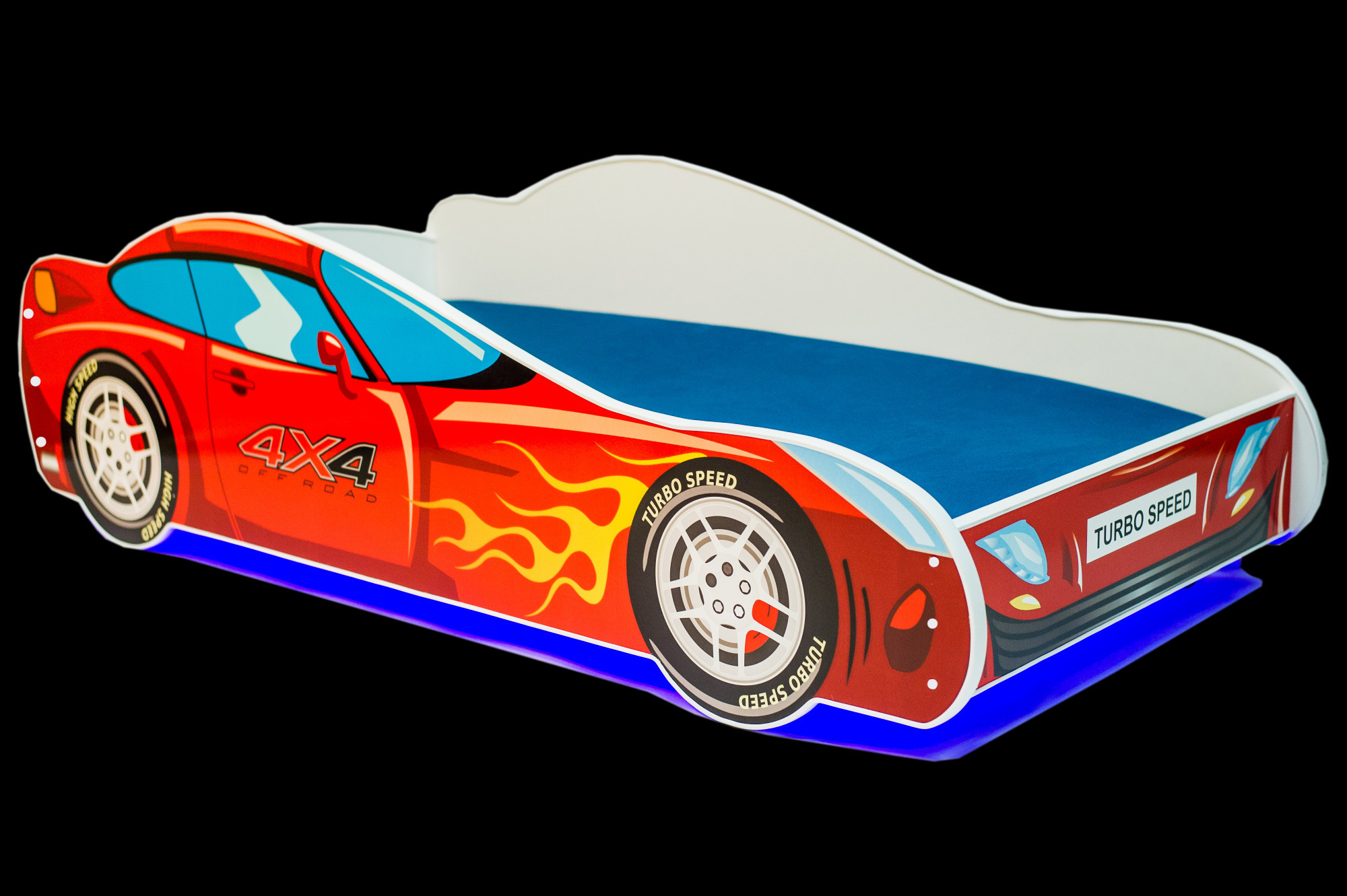 Jednolůžková postel CAR 4x4 je ideální volbou pro malé milovníky aut a motorismu. Zajímavý design umožní vašemu dítěti cítit se jako skutečný závodní jezdec. Univerzální LED osvětlení jistě oživí interiér a vytvoří jedinečnou atmosféru v pokoji vašeho dítěte. V procesu výroby byly použity ekologické vodní barvy, které jsou bezpečné a odolné vůči mechanickému poškození. Navíc postel nemá ostré rohy a grafika je chráněna laminátem.
