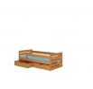 Jednolůžková postel BEMMA s jednoduchým tvarem se skvěle hodí do interiéru pokoje chlapce nebo dívky. Výhodou je ochranná zábrana zajišťující bezpečnost během spánku a prostorné a funkční zásuvky na ložní prádlo. Součástí sady je také odolný rám vyrobený z pevných lamel. Matrace není součástí postele.