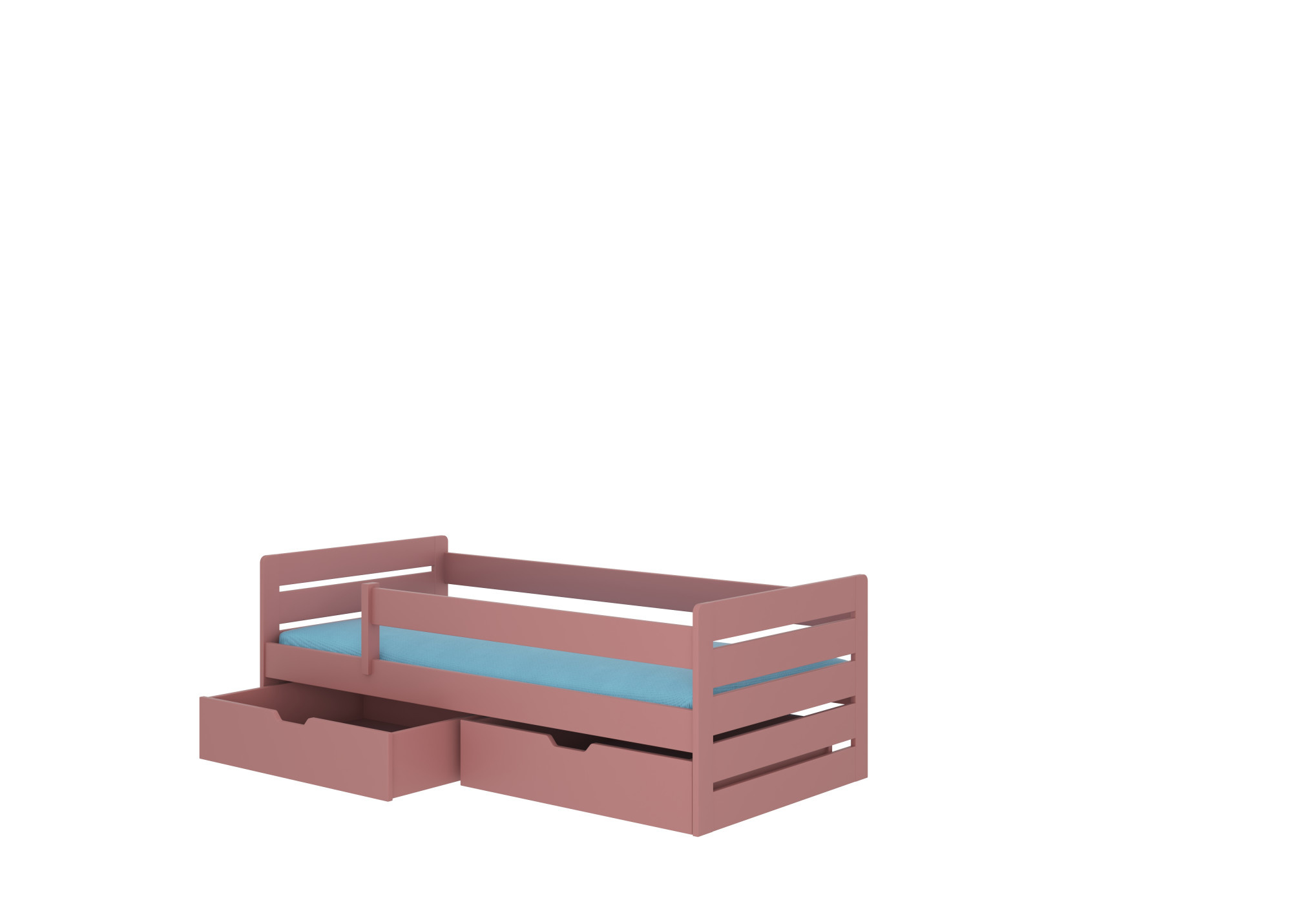 Jednolůžková postel BEMMA s jednoduchým tvarem se skvěle hodí do interiéru pokoje chlapce nebo dívky. Výhodou je ochranná zábrana zajišťující bezpečnost během spánku a prostorné a funkční zásuvky na ložní prádlo. Součástí sady je také odolný rám vyrobený z pevných lamel. Matrace není součástí postele.