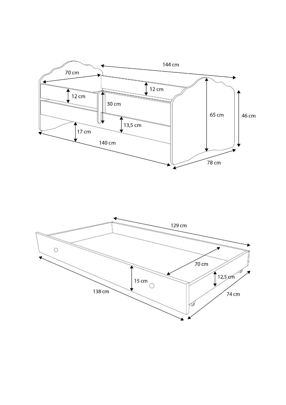 Postel s matrací, zábranou a šuplíkem CASIMO 140x70 Bílá