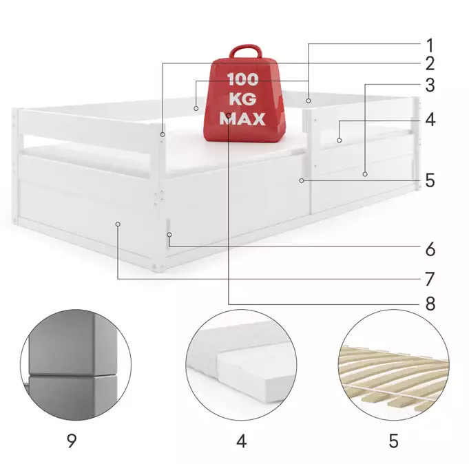 - Maximální zatížení postele je 100 kg