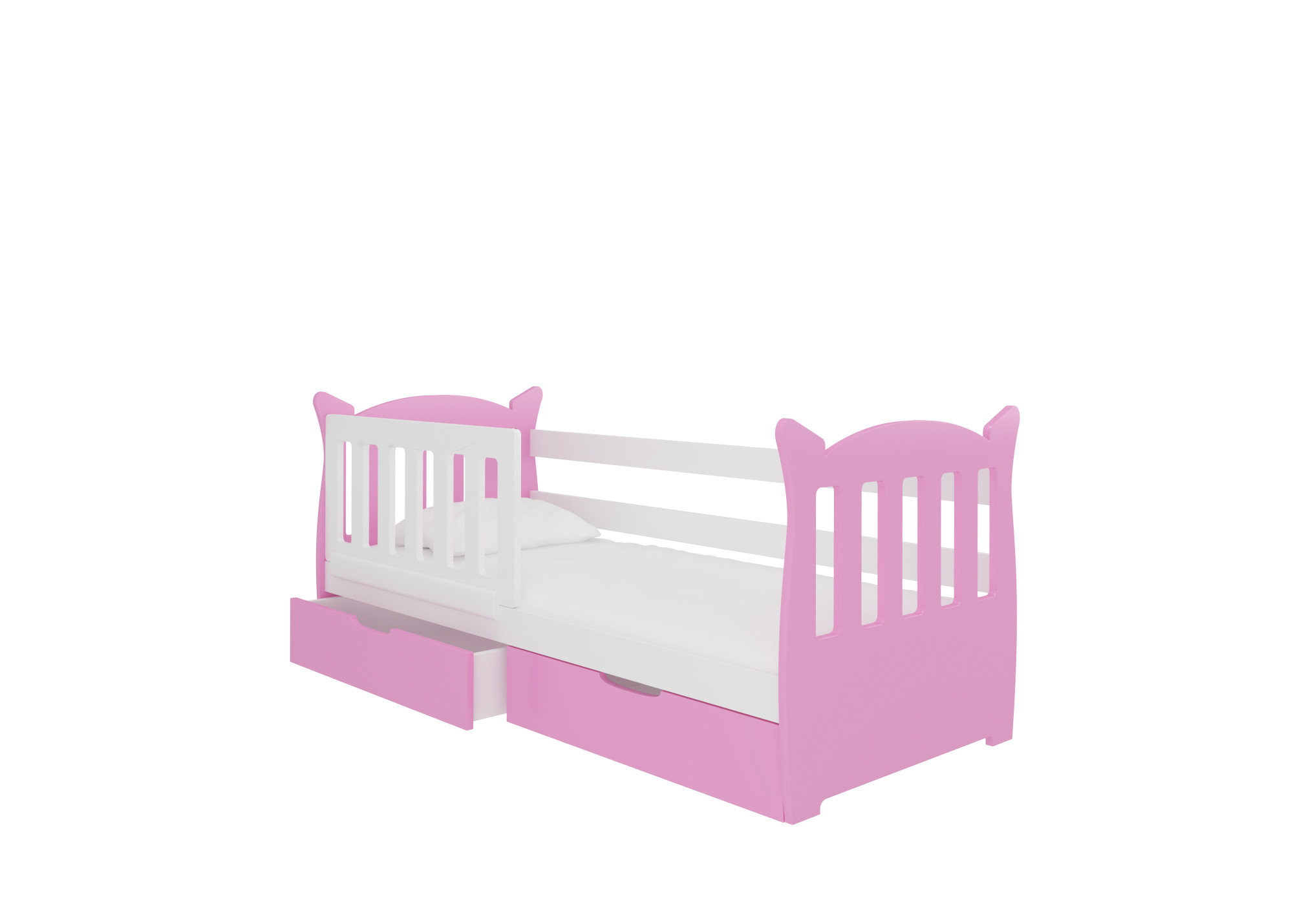 Jednolůžková postel LENA se skvěle hodí do interiéru pokoje chlapce nebo dívky. Model byl doplněn o ochrannou zábranu zajišťující bezpečnost během spánku a prostorné a funkční zásuvky na ložní prádlo. Součástí sady je také odolný rám a pěnová matrace s bavlněným potahem na zip.