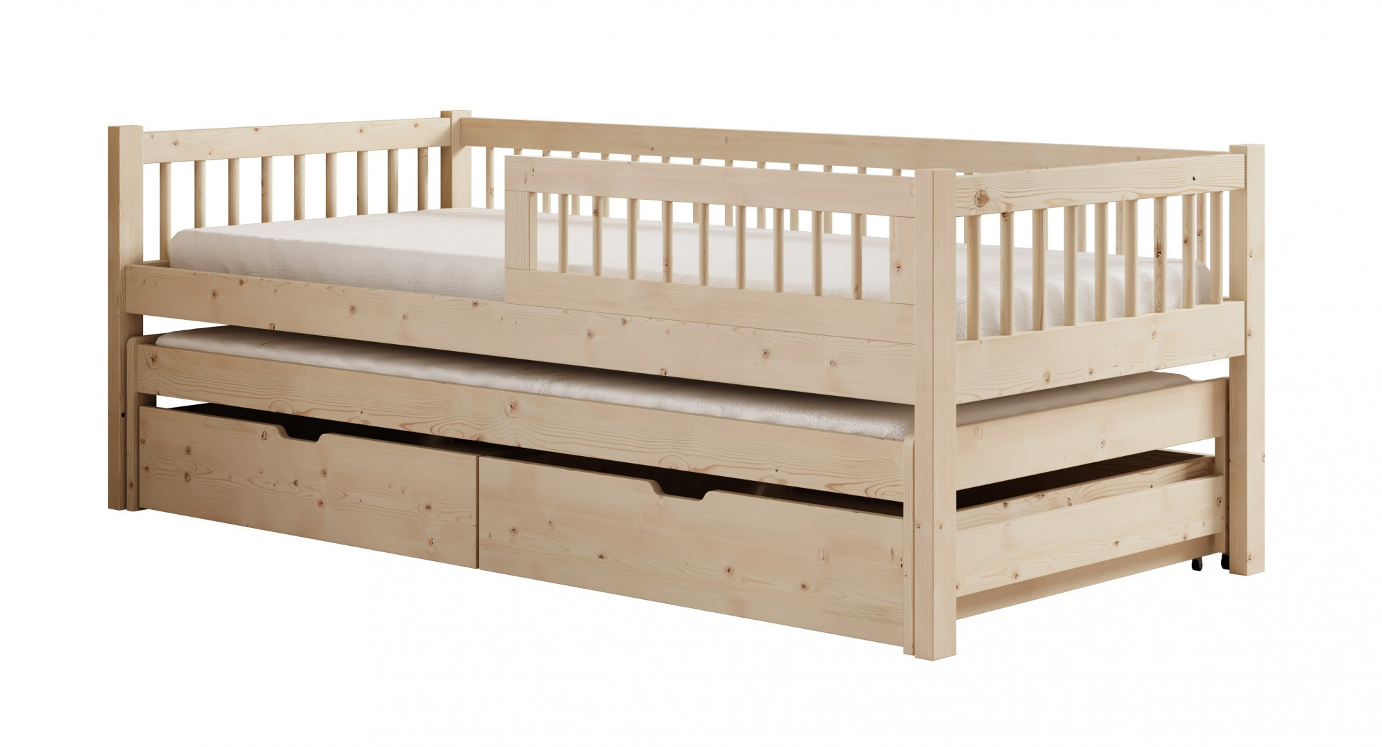 Dětská postel Orio – to je ideální řešení pro sourozence nebo děti, které potřebují více prostoru. Dvoulůžková postel je k dispozici ve dvou velikostech: 180x80 cm a 200x90 cm, což umožňuje přizpůsobit ji různým potřebám a velikostem pokoje.Vyrobeno z pevných materiálů, postel je k dispozici ve dvou atraktivních barevných variantách: bílá a borovice, což usnadňuje její sladění s interiérem každé místnosti. Další výhodou jsou **dva kontejnery** umístěné pod postelí, které poskytují dodatečný prostor pro uložení ložního prádla, hraček nebo jiných věcí, čímž udržují pořádek v dětském pokoji.Postel Orio spojuje funkčnost s estetikou, nabízí pohodlný spánek a praktická řešení pro každý den.